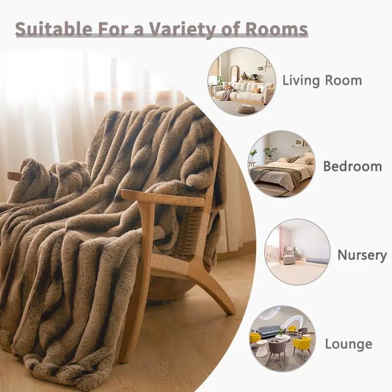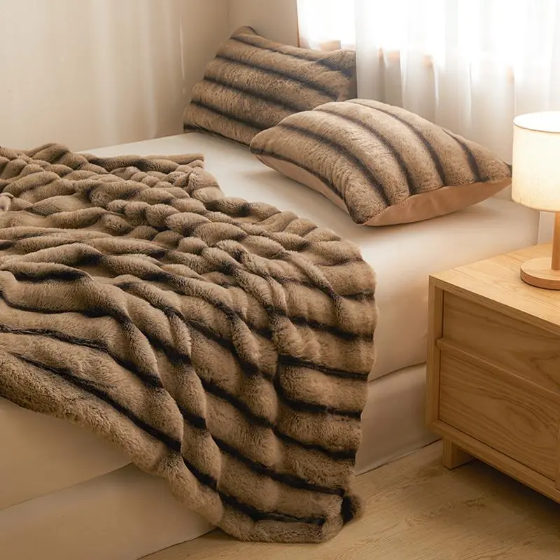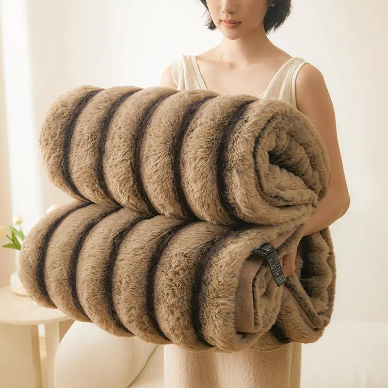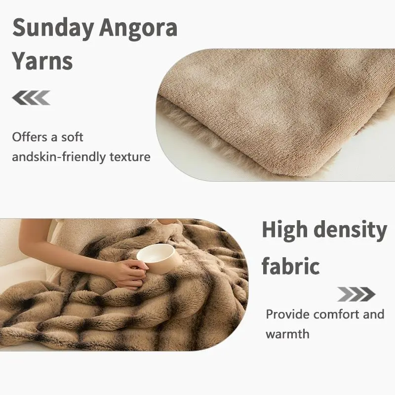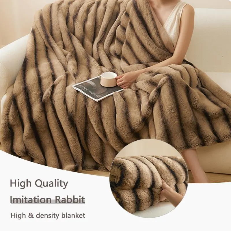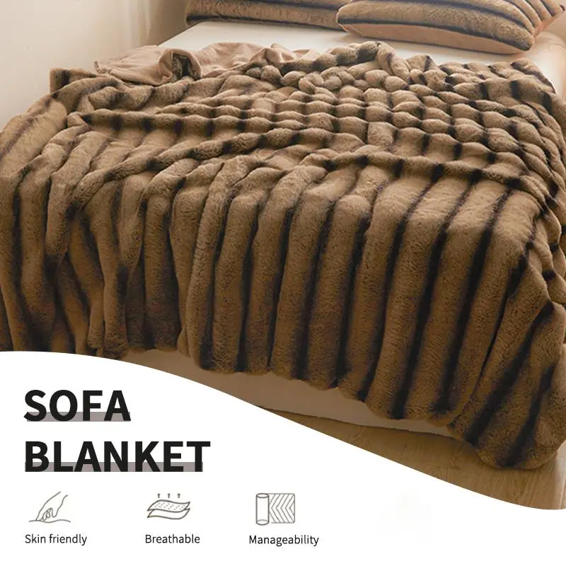Imitation Rabbit Fur Warm Blanket, Double Layer Luxury Milk Velvet Blanket, Comfortable and Soft Blanket for Bedrooms and Living Rooms, Outdoor Travel Blanket