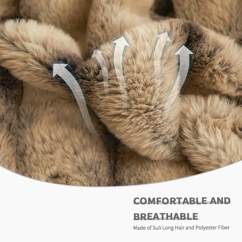 【Imitation Rabbit Fur】: Crafted with imitation rabbit fur, it offers a decadently soft texture, providing a warm embrace without the use of real fur.