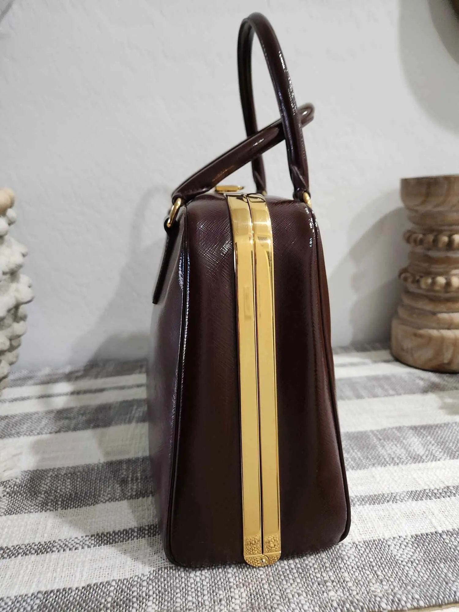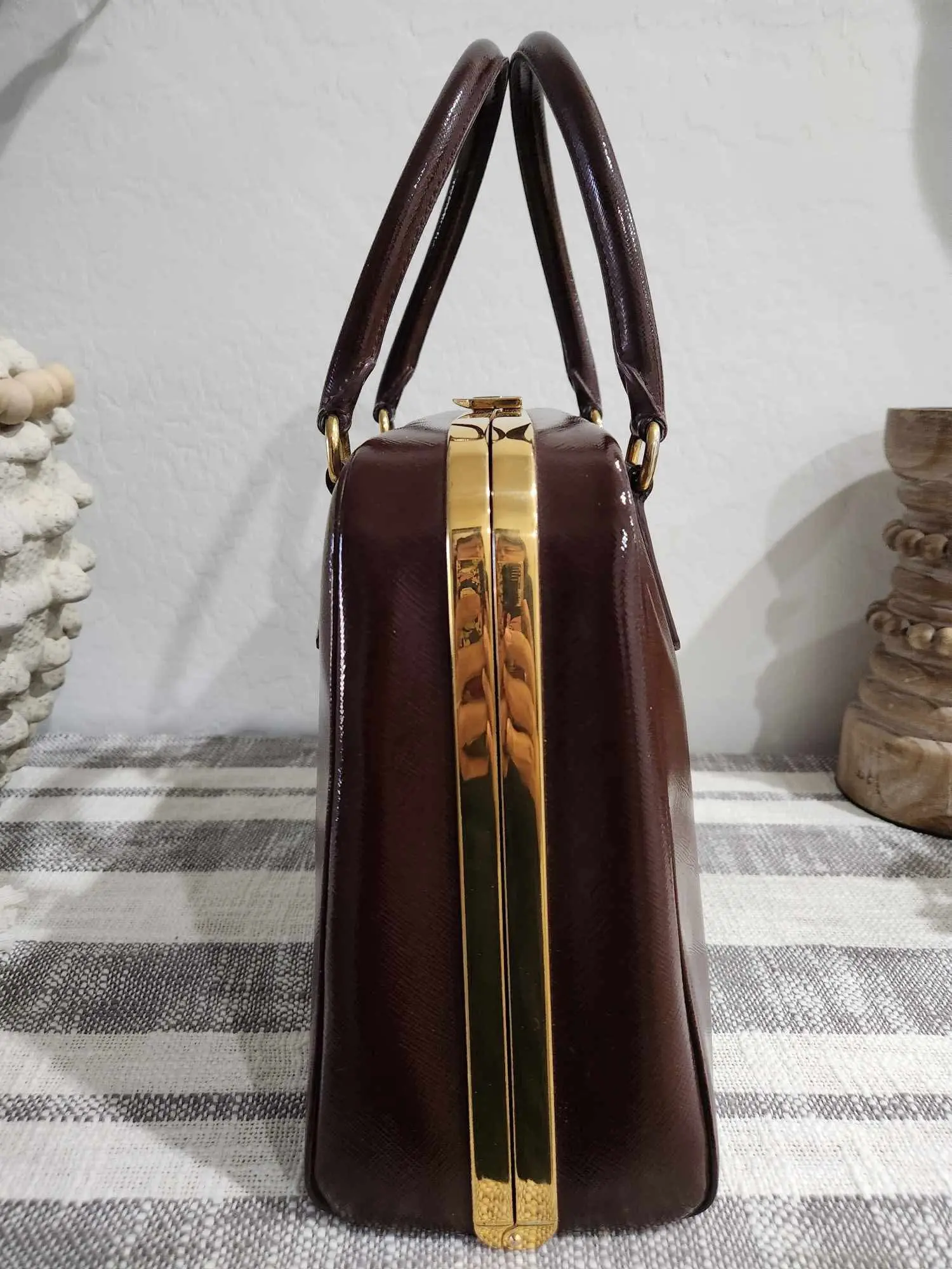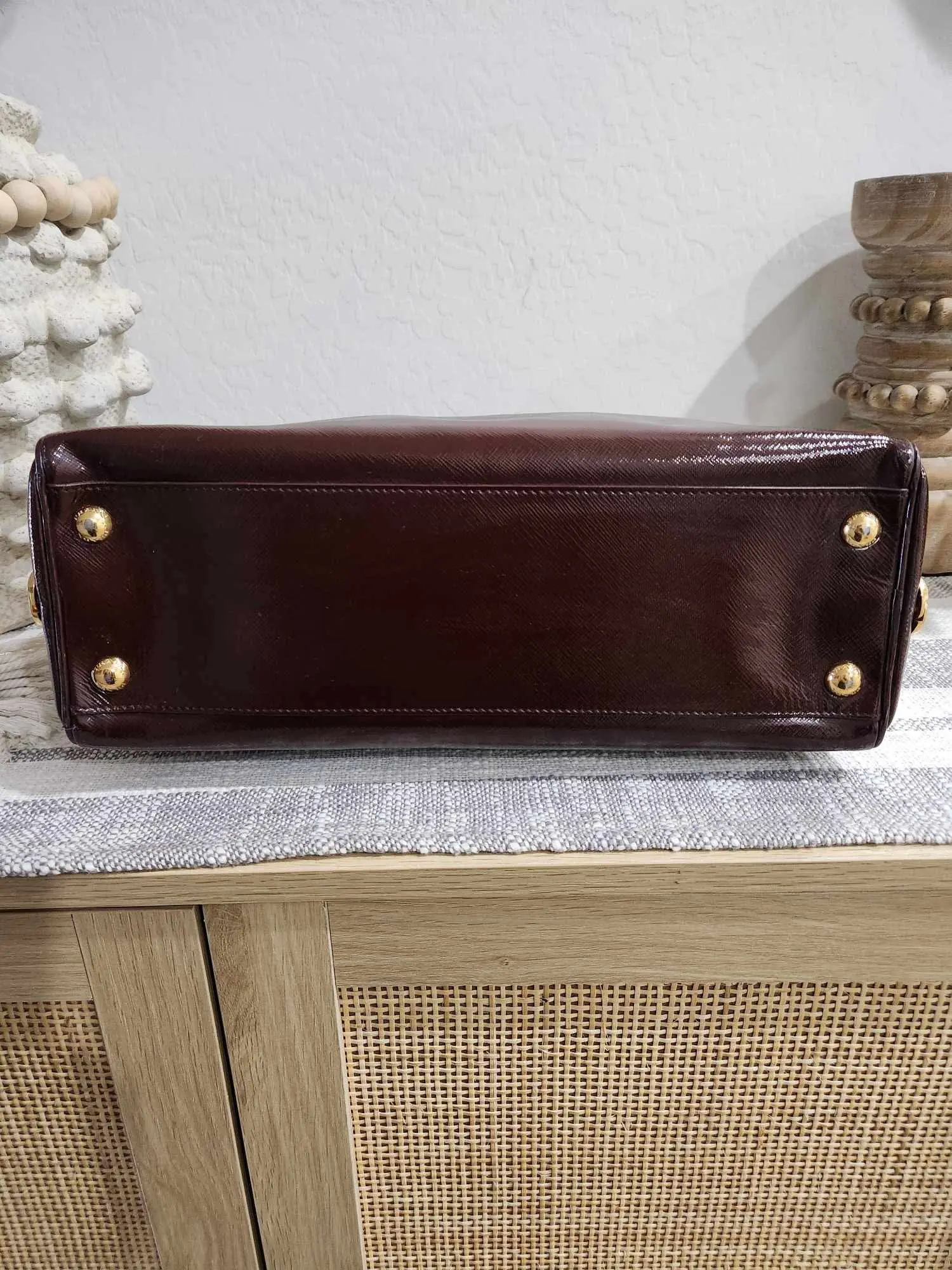 Discover the charm of this preloved rare vintage Prada Saffiano Vernice Pyramid Handbag. This exquisite piece is a testament to the timeless elegance of the Prada brand, offering a unique and stylish accessory for any occasion.
