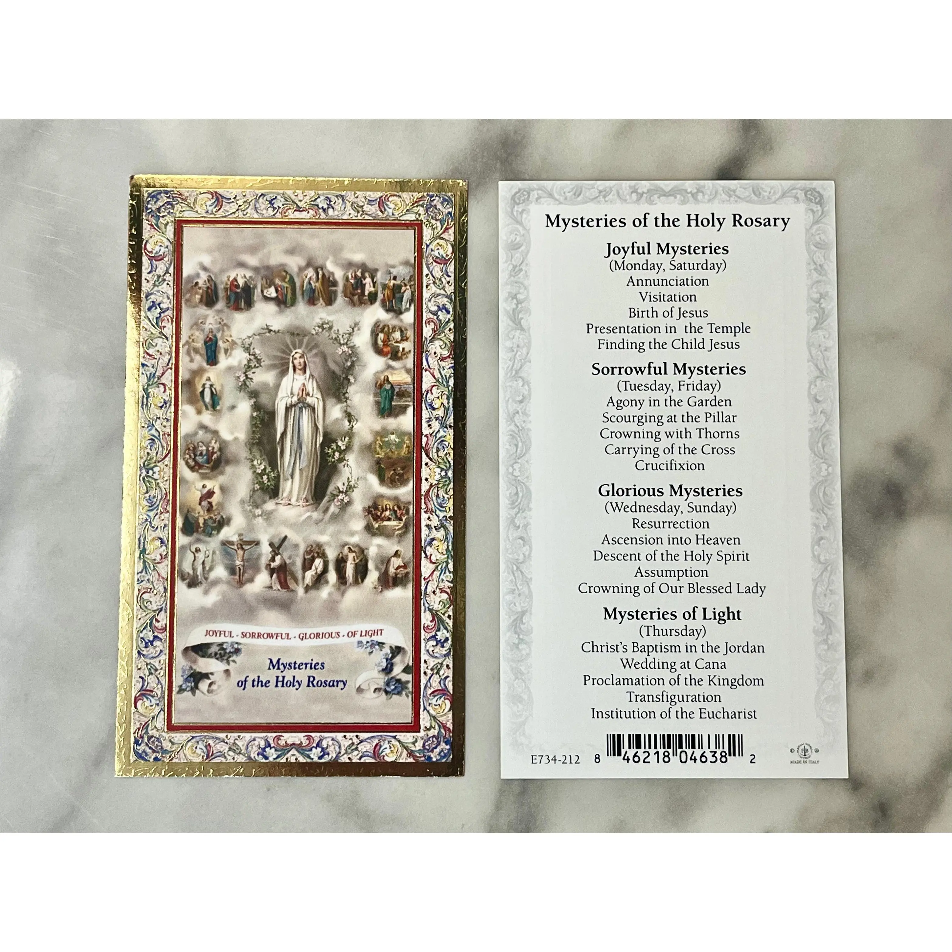 Mysteries of the Rosary Gold Embossed Paper Holy Card