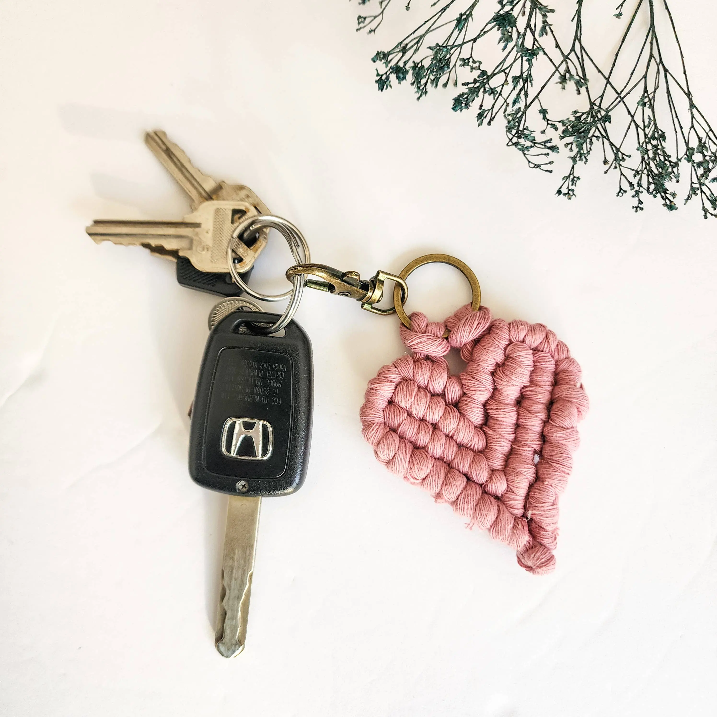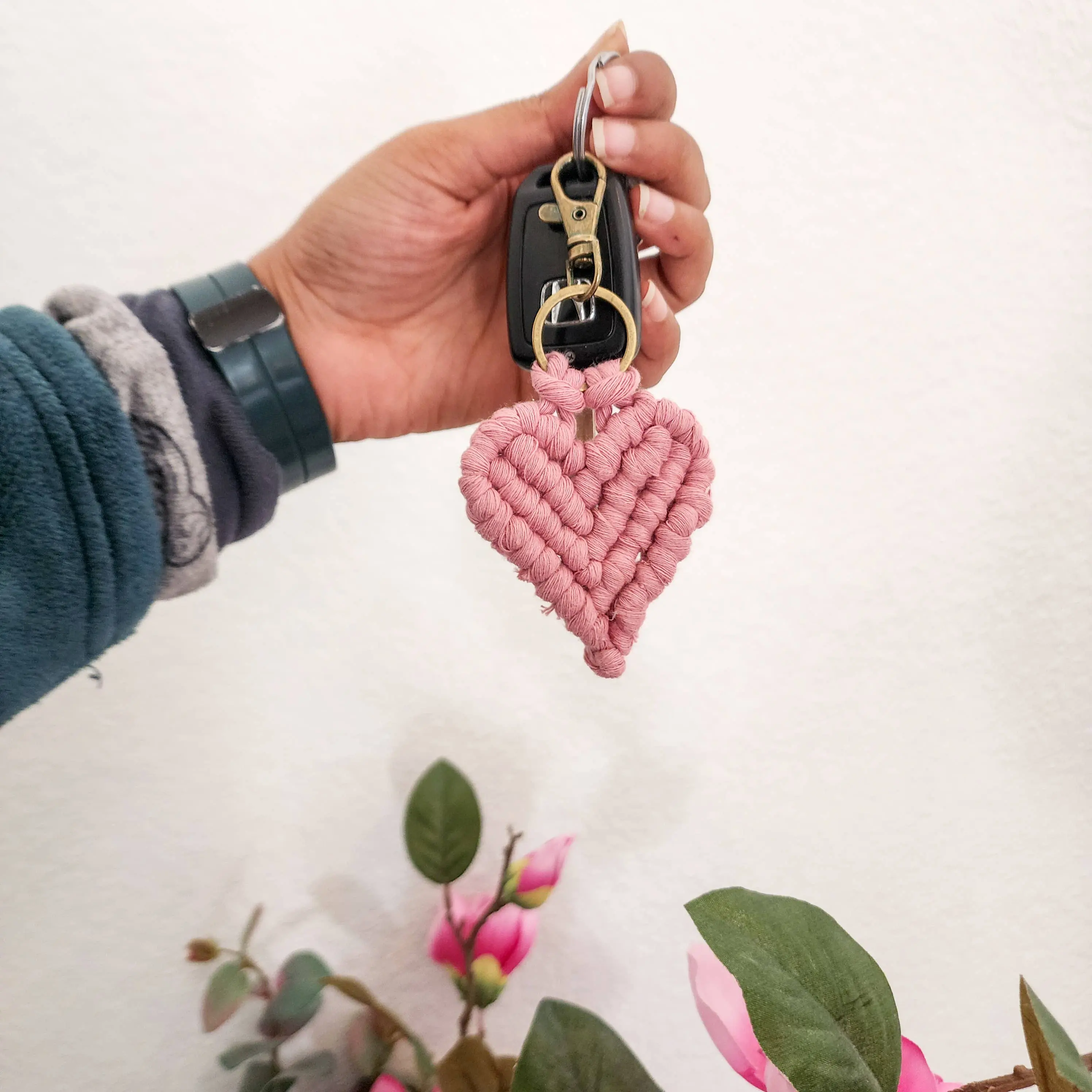 Handmade Boho Macrame Heart Keychain – Valentine's Day Gift