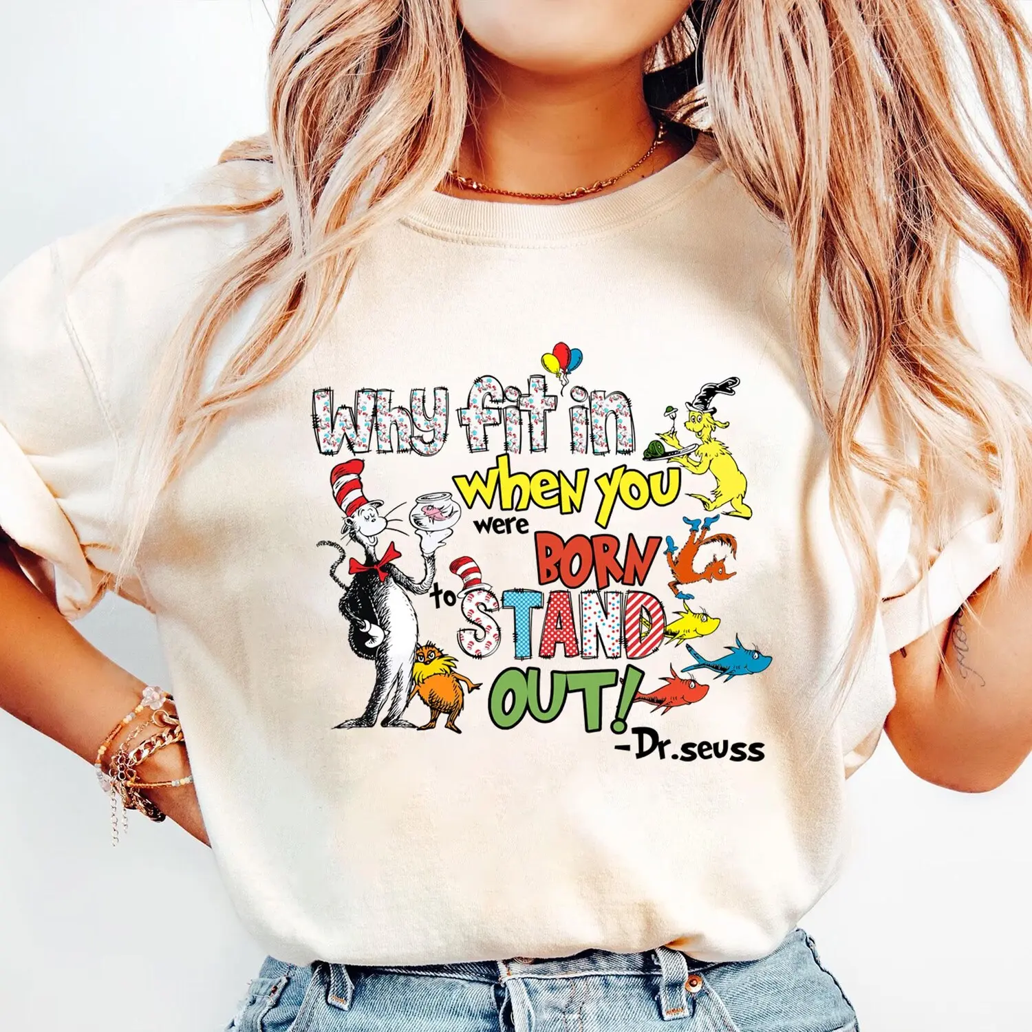 Dr Seuss shirt, Why Fit In When You Were Born To Stand Out Shirt, Cat In the Hat Shirt, Teacher Gift, Dr.Seuss Day Shirt Reading 0L