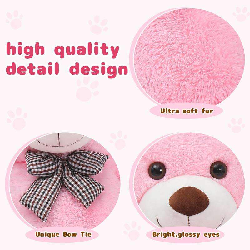 ·Our giant cute teddy bear is perfect for girls, boys, wife, kids, children, girlfriends, boyfriends, and anyone who loves stuffed animals. It's the perfect gift for Children's Day, Christmas Day, Birthday, Valentine's Day, Halloween, Mother's Day, baby shower decoration, gender reveal, or house-warming party. Surprise your loved ones with the best gift ever!