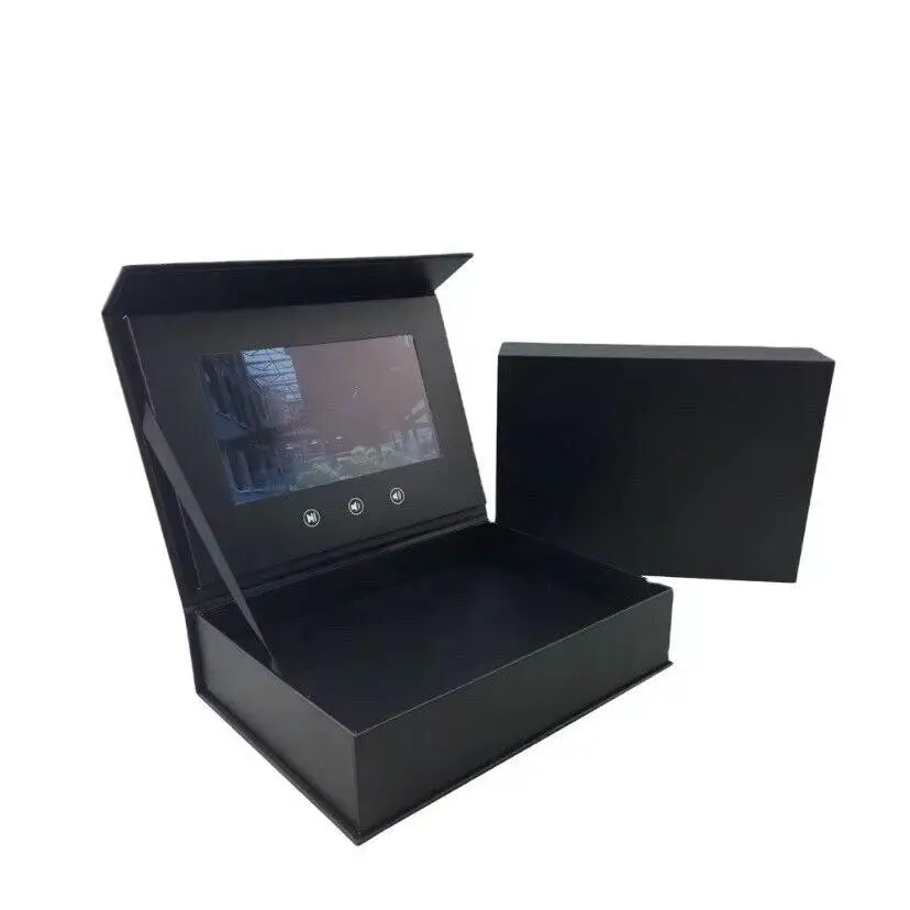 This black luxury video gift box is the perfect way to commemorate any special occasion. With a sleek design and high-quality paper material, it can hold items for a truly memorable gift.