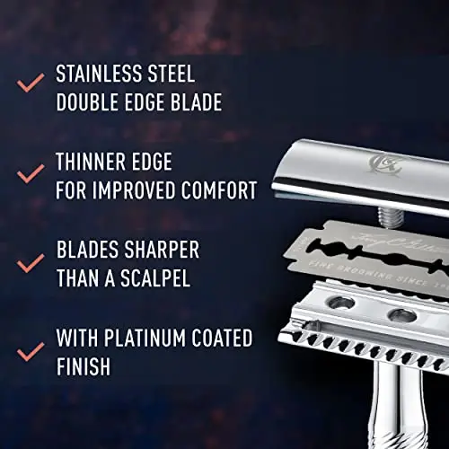 Stainless steel blades. Includes 10 High-Quality Platinum-coated stainless steel double edged razor blades to shape with accuracy
