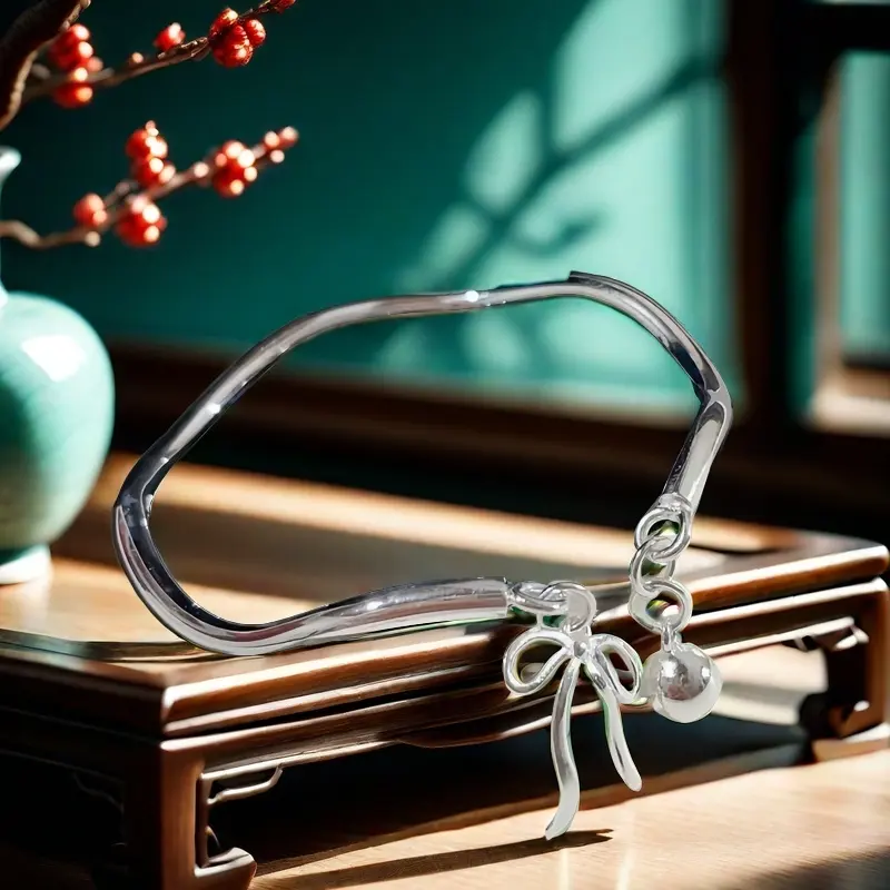 Full Silver s999 bangle Sterling Silver bangle Ladies Open bangle can be freely adjusted size to send girlfriend birthday holiday gift Silver weight 16 g /0.56 oz