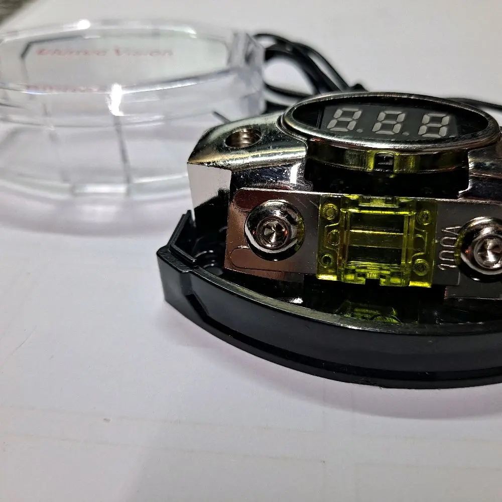 * Mini ANL AFS Fuse Holder and Distribution Block: Features a 100 ANL fuse holder and 1x4/8G in, 1x4/8GA out, with 1x 100A fuse and built-in volt LED display for easy monitoring of voltage levels.