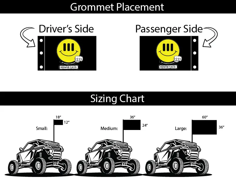 These flags feature grommet mounting for use on UTV/SXS, trucks, trailers, ATVs, boats, and more. They fit any flag mount or can be hung on walls, garages, or gyms.