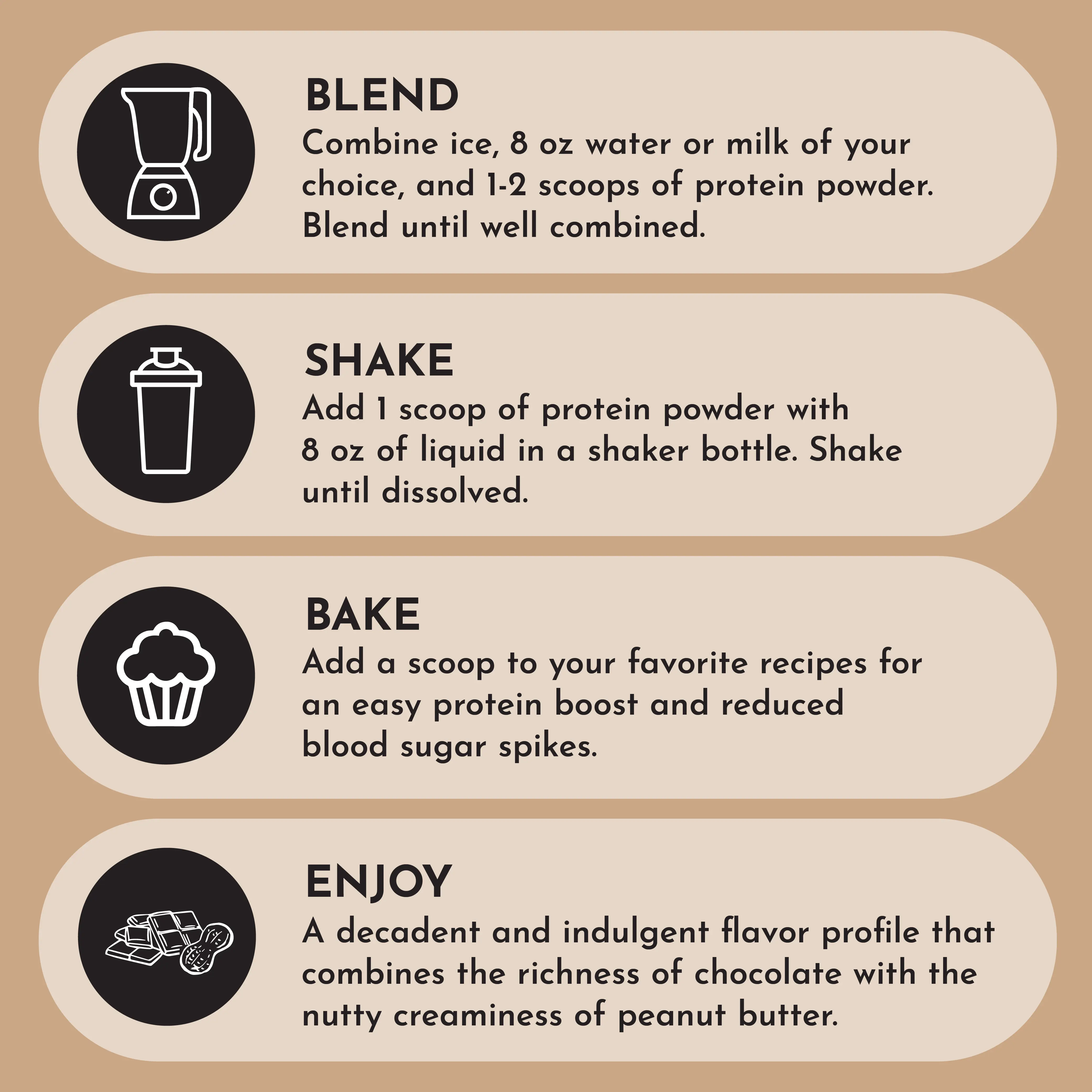 New formula, now without stevia. Our Peanut Butter Chocolate Vegan Protein Powder is a satisfying protein powder made from four plant-based proteins. With a smooth, not gritty or chalky texture, it’s an excellent choice for those looking for a delicious, plant-based protein that delivers both taste and quality.