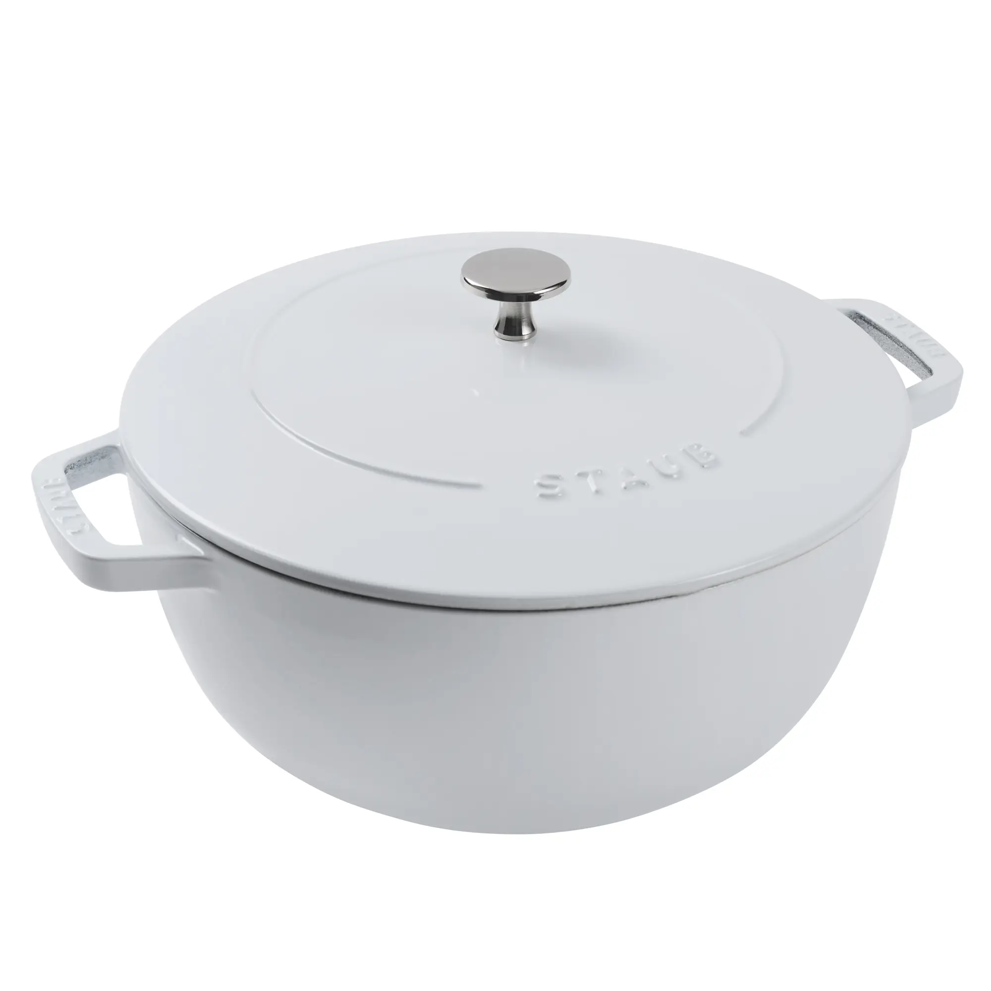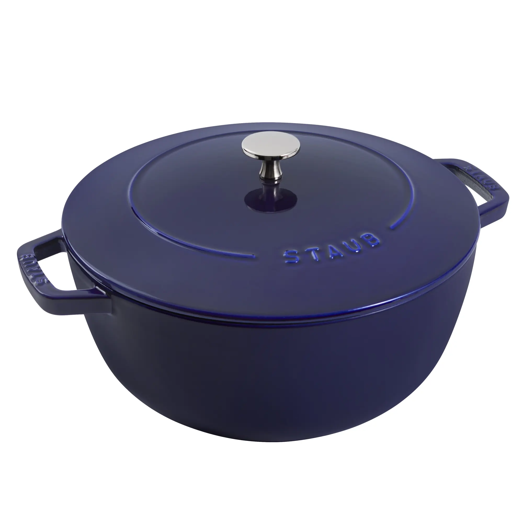 The STAUB cast iron French Oven is an heirloom quality piece designed to be passed down through generations. Made in France for 50 years, this versatile cast iron pot offers endless possibilities. Its high, sloped sides ensure easy stirring and better heat circulation, perfect for soups, braises, and baking. STAUB’s enameled cast iron needs no seasoning, retains heat evenly, and features a self-basting lid for rich flavors. Crafted for lasting beauty, it transitions seamlessly from oven to table.
