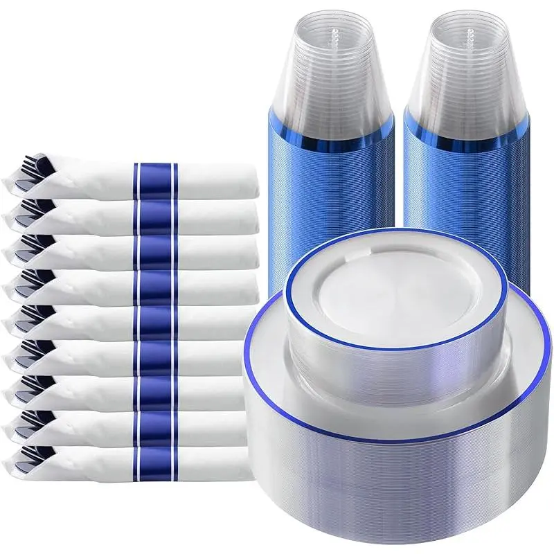 ·Includes: Dinner plates, dessert plates, cups, paper napkins, forks, knives, and spoons