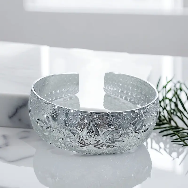Full Silver s999 bracelet Sterling Silver bracelet Ladies Open bracelet can be freely adjusted size for mother's birthday holiday gift Silver weighing 46 g /1.62 oz