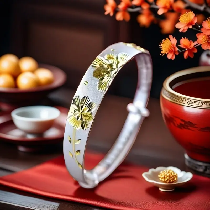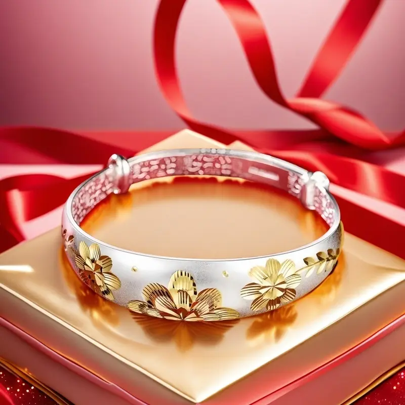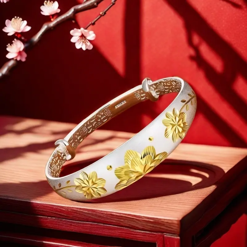 Full Silver s999 bangle Sterling Silver bangle Ladies Open bangle can be freely adjusted size to send girlfriend birthday holiday gift Silver weight 16 g /0.56 oz