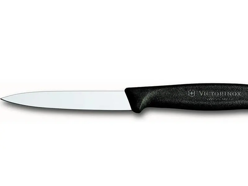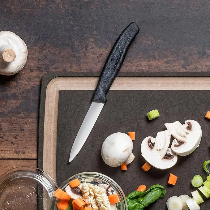·Multipurpose straight edge paring knife designed for garnishing, mincing, peeling, slicing and dicing with razor sharp, laser-tested, tapered knife edge, which is ground to form an exacting angle to hold a sharp edge longer and ensure maximum cutting performance and durability