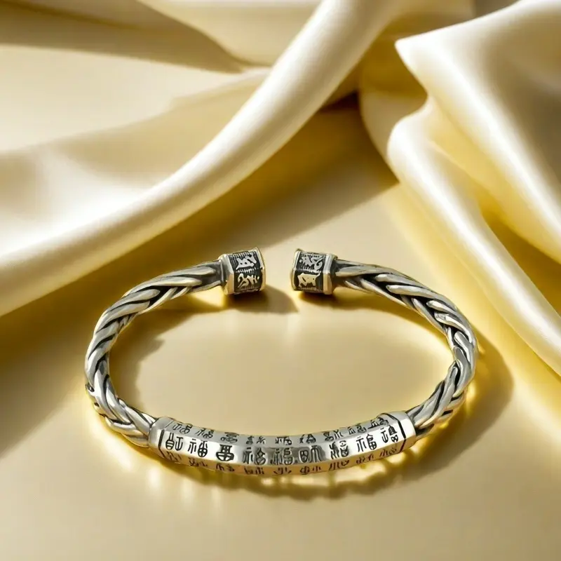 Solid Silver s925 Bangle Sterling Silver bangle Men's open bangle can be freely adjusted size send boyfriend send Dad birthday holiday gift Silver weight 34g /1.19 oz