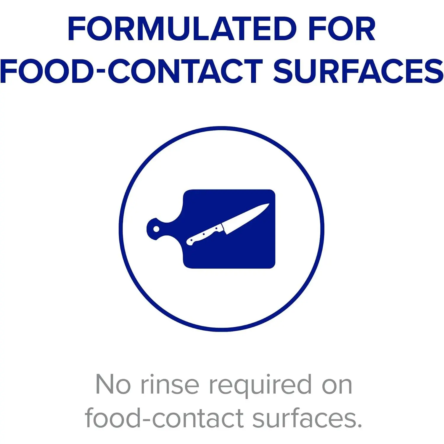 "Quickly and conveniently eliminate 99.9% of both bacteria and viruses","Worry-free, no-rinse formula - no harsh fumes, no gloves or PPE needed, no handwashing required after use","Exceptional performance and safe to use across a wide range of surfaces - approved for use on food-contact surfaces","Eliminates the need for mixing chemicals; Reduces the risk of cross-contamination"