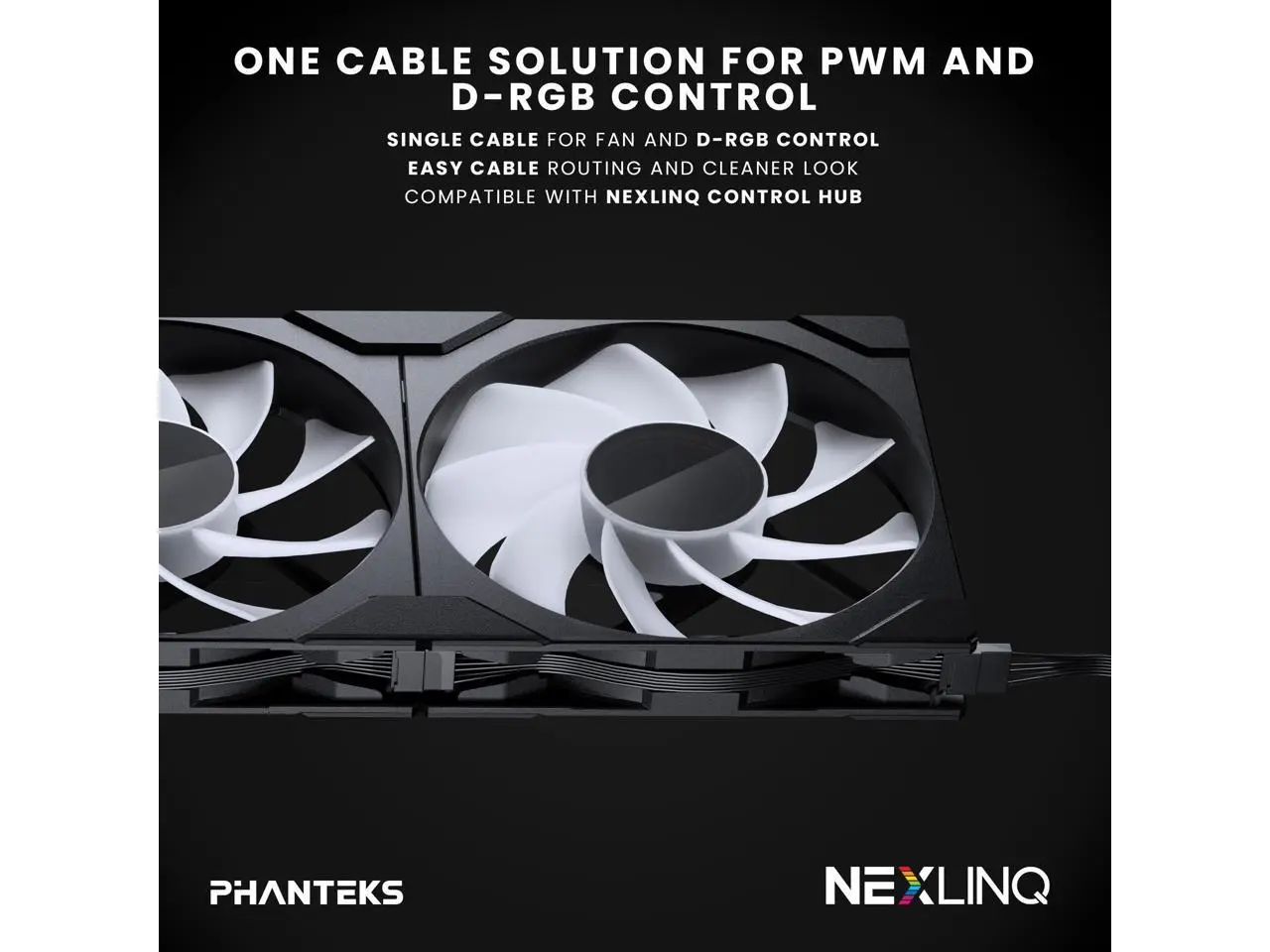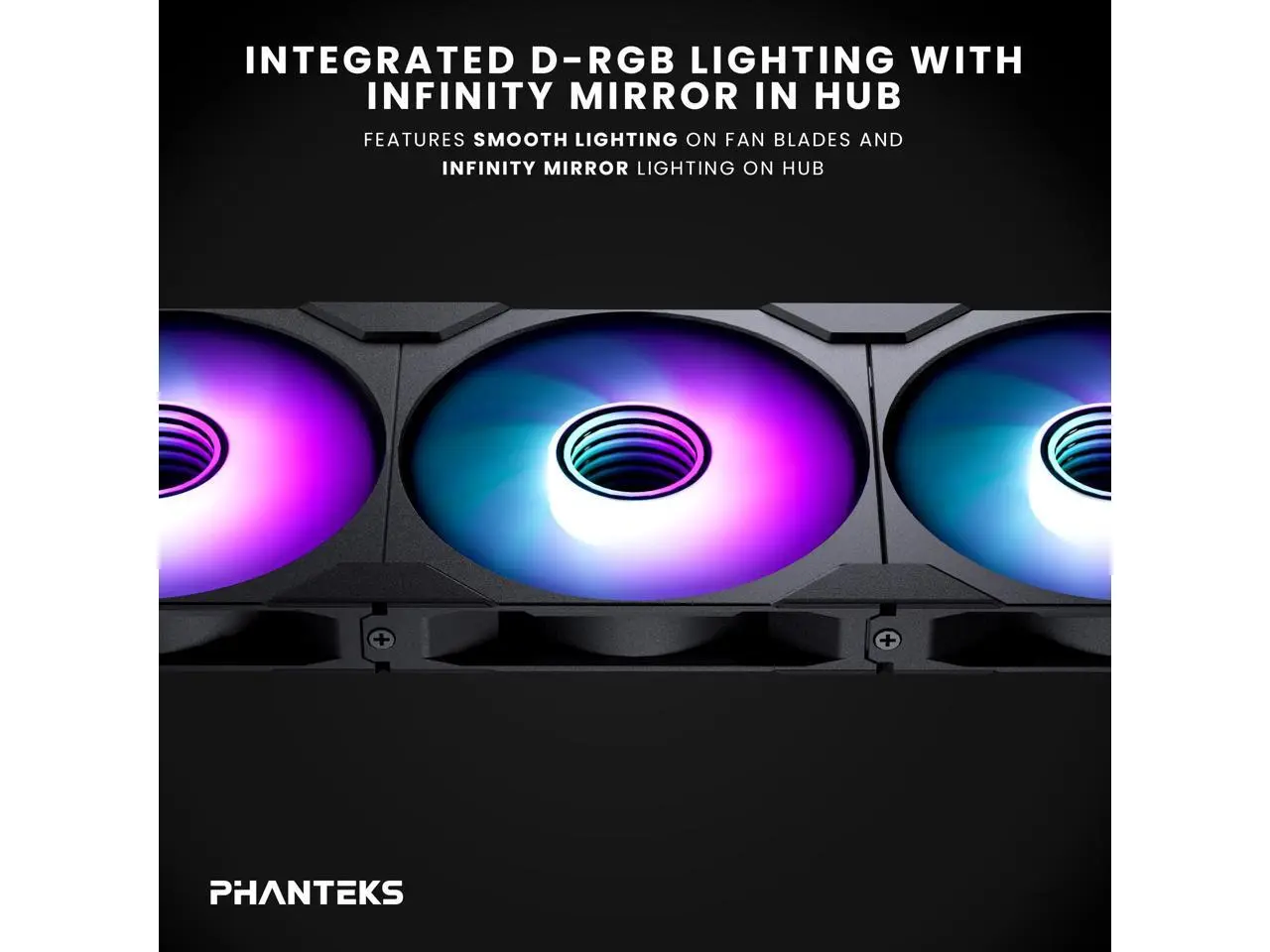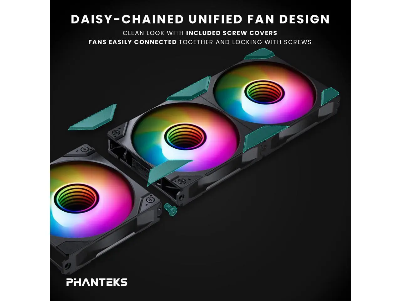 5. Phanteks M25-140 Gen2 Reversed Blade, 140mm ARGB High Performance Cooling Fans, Daisy-chain Unified Fan Frame, Infinity Mirror hub, single cable connection, Black