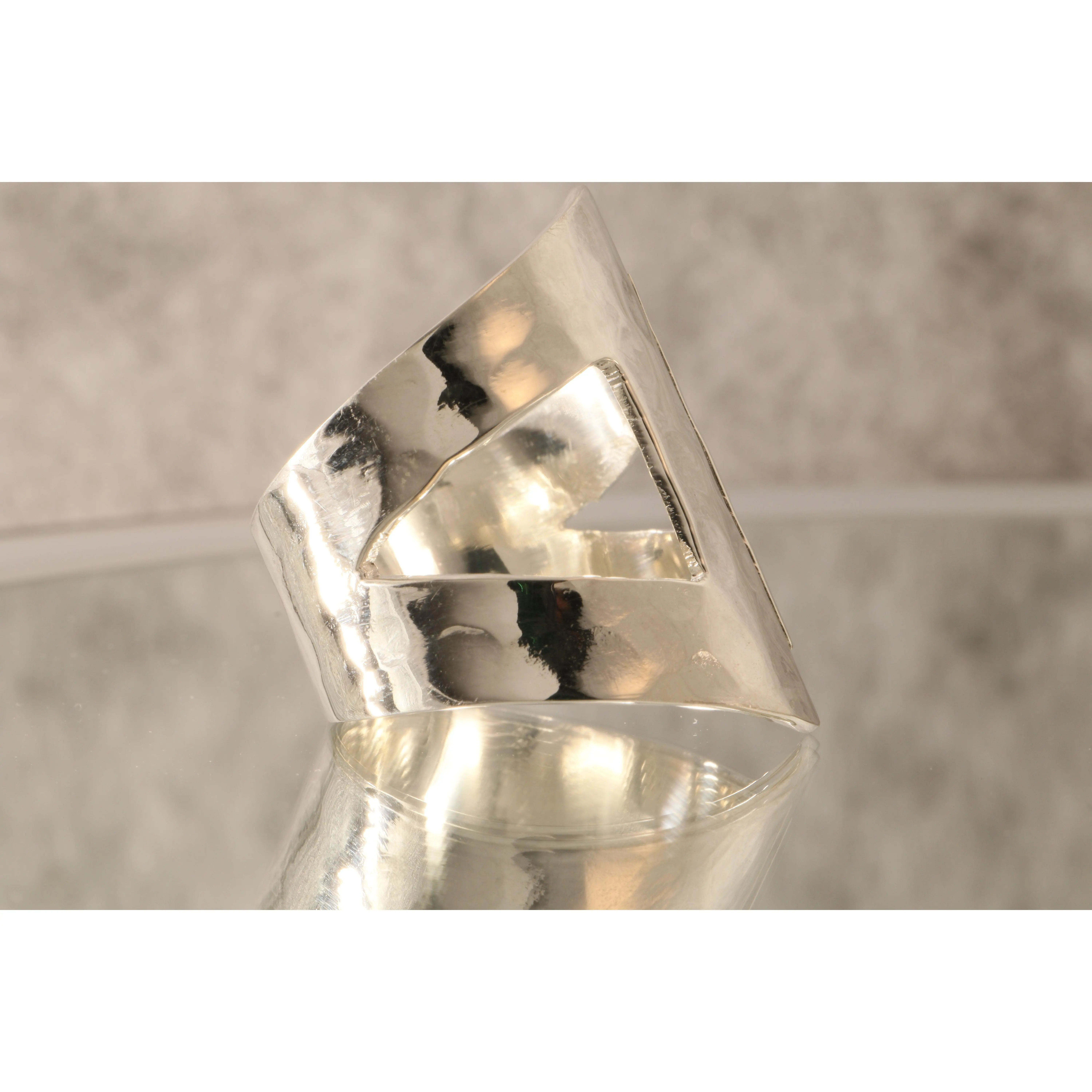Our "Echoes of Light" ring is a bold statement of refined craftsmanship, designed and crafted in our taller in Taxco. With its striking open band design and polished silver finish, this ring celebrates the elegance of simplicity and the strength of clean, modern lines.