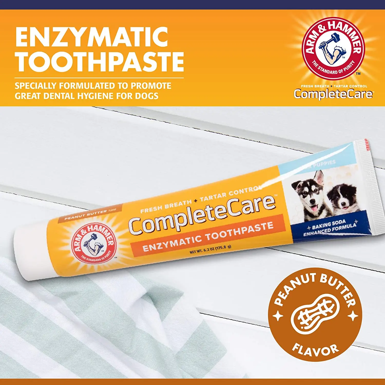 ·BAKING SODA ENHANCED PUPPY TOOTHPASTE – This toothpaste for puppies is made with Arm & Hammer baking soda to help fight bad breath and keep your doggy's teeth clean. It works as a freshener and supports better dental wellness for your canine.