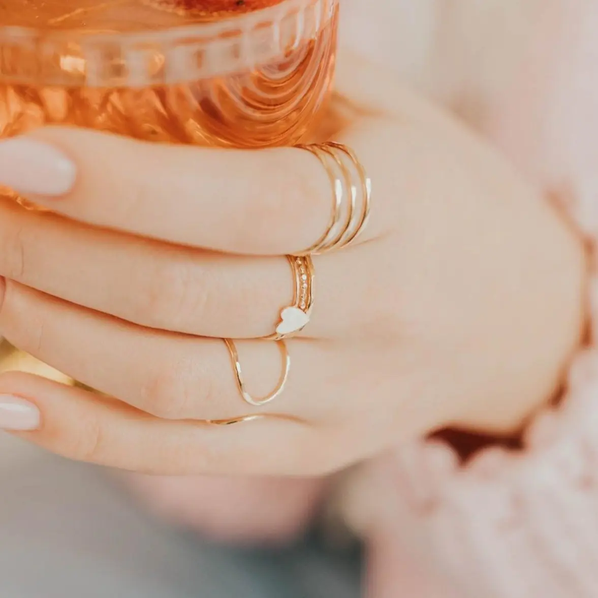 I love the Be Mine ring EVEN MORE after stacking with some other favorites 😍❤️ #fyp #goldjewelry #jewelrysmallbusiness #ringstackinspo #goldrings #creatorsearchinsights #valentinesday #love