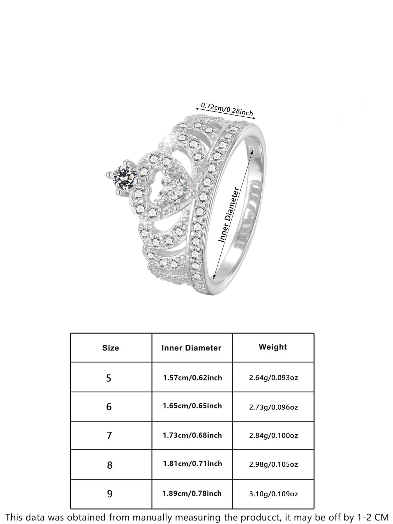 5. S925 Sterling Silver Crown Design Promise Ring, Fashion Engagement Ring for Women, Engagement Wedding Rings, Trendy All-match & Exquisite Jewelry for Birthday Gift