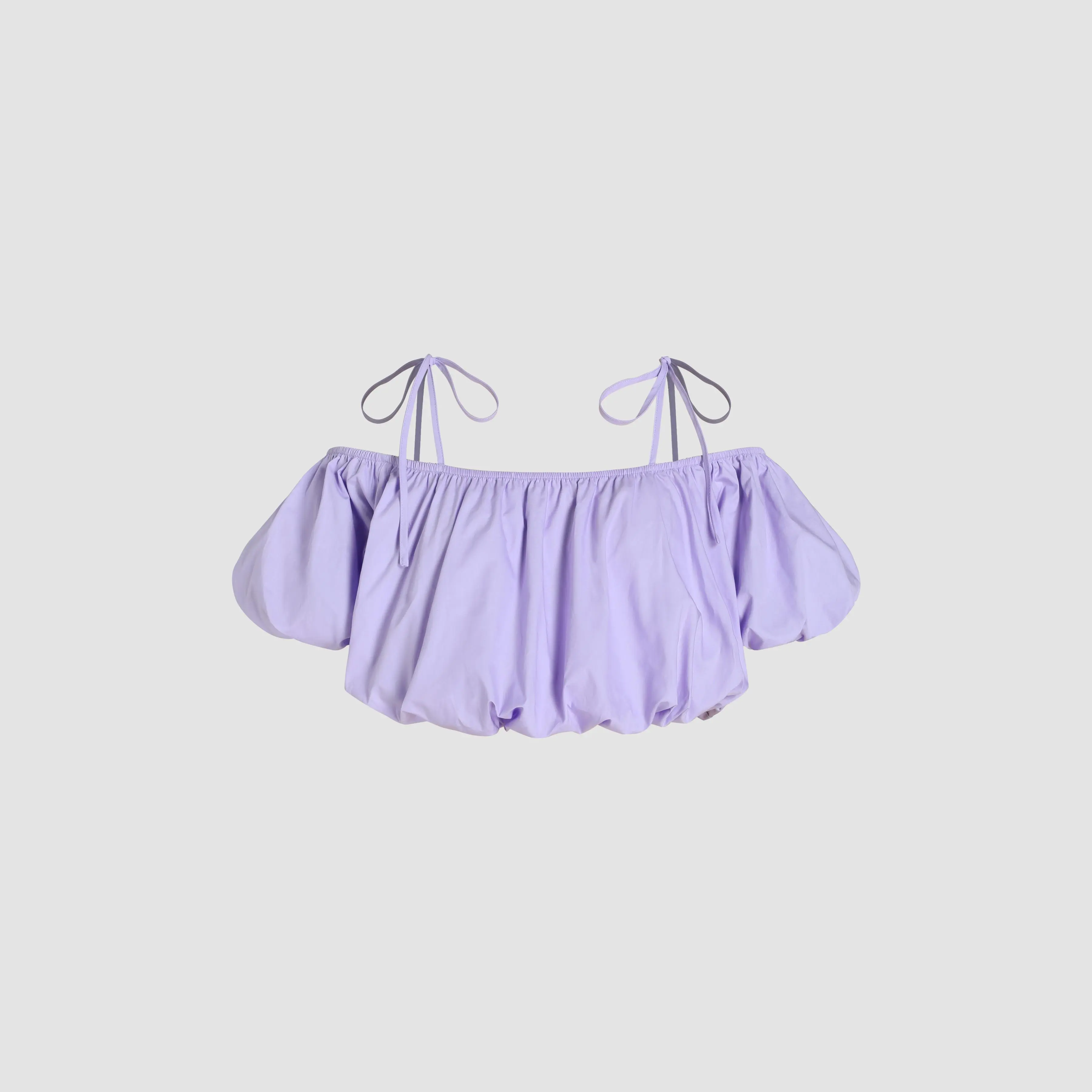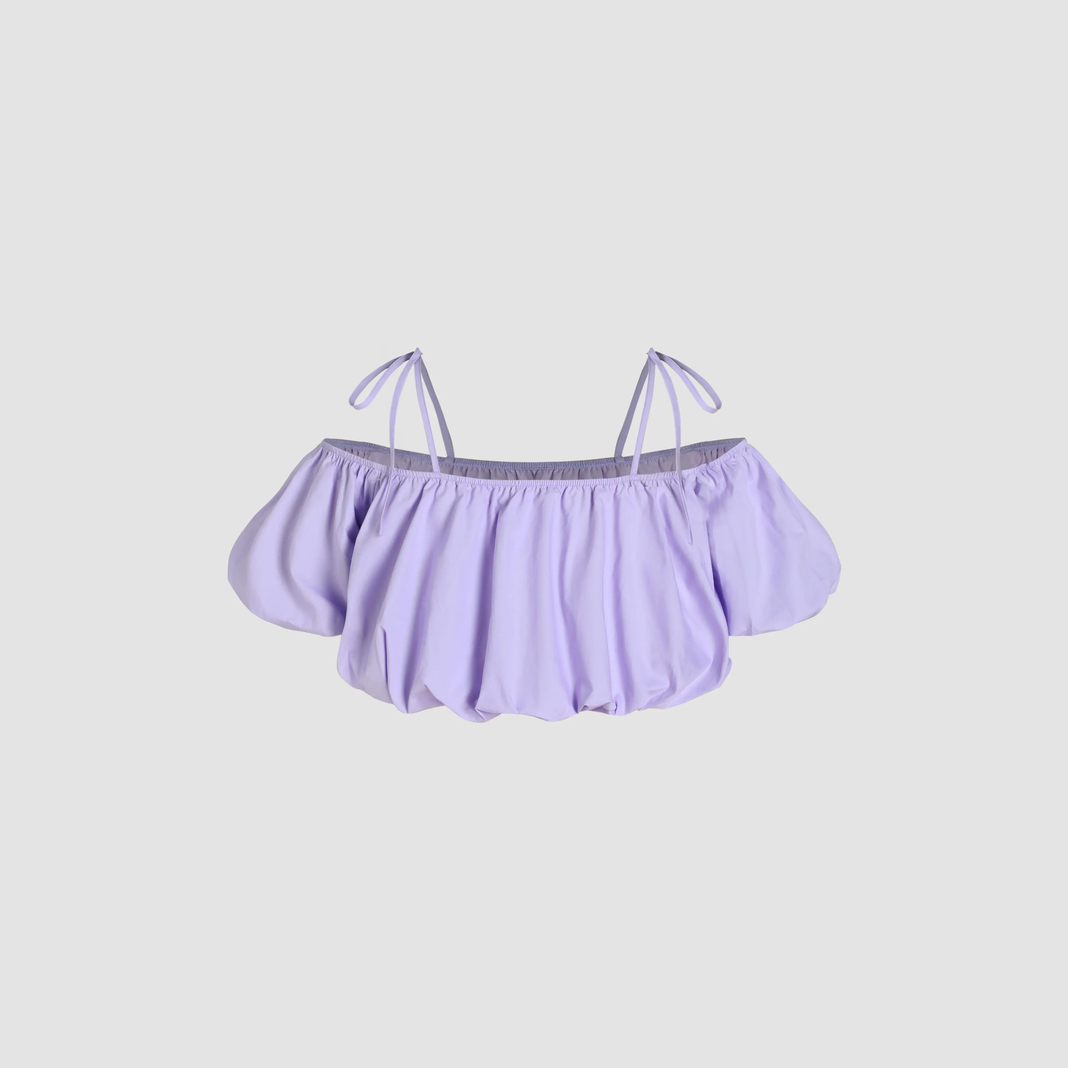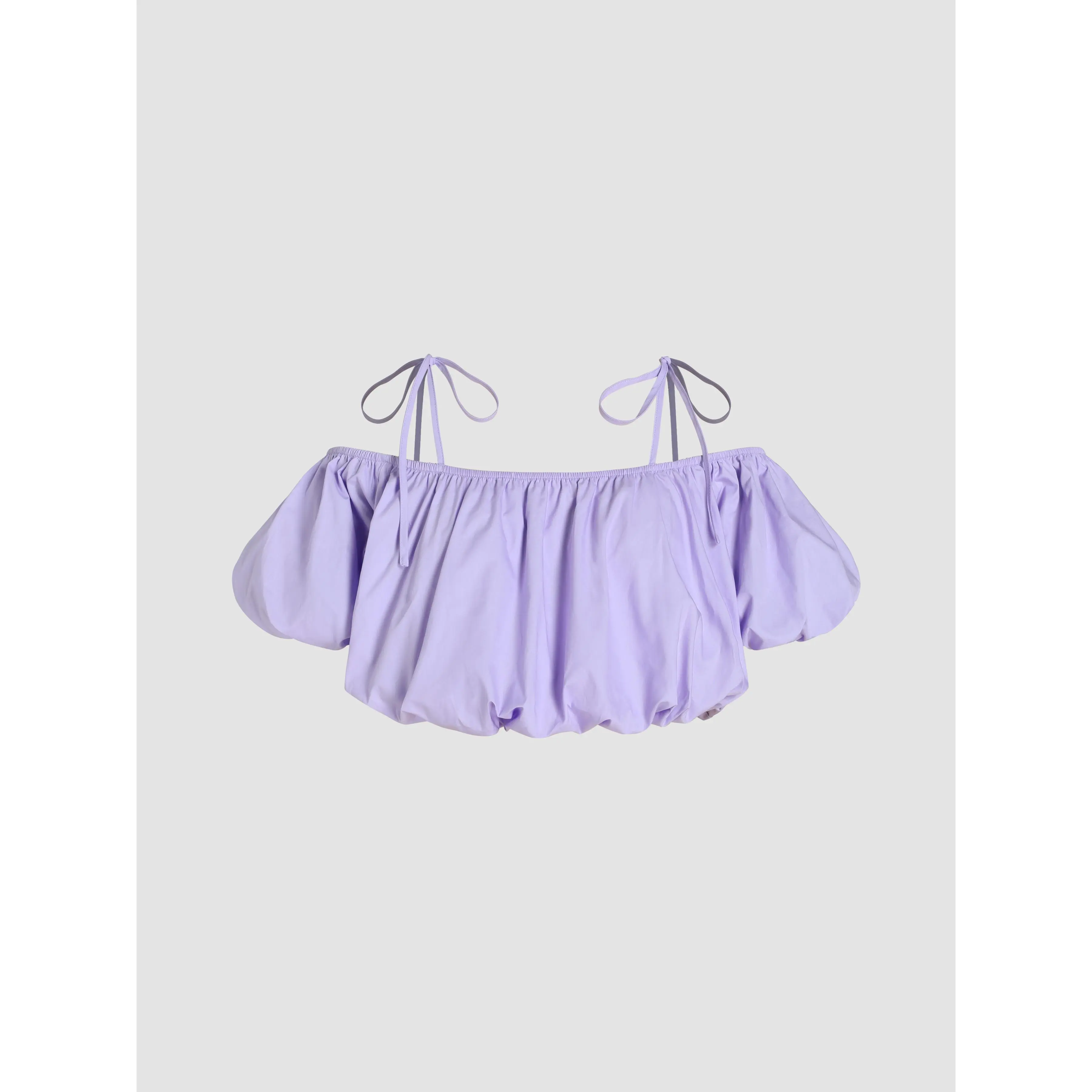 5. Cider [size 0-10] Off-shoulder Knotted Bubble Short Sleeve Blouse