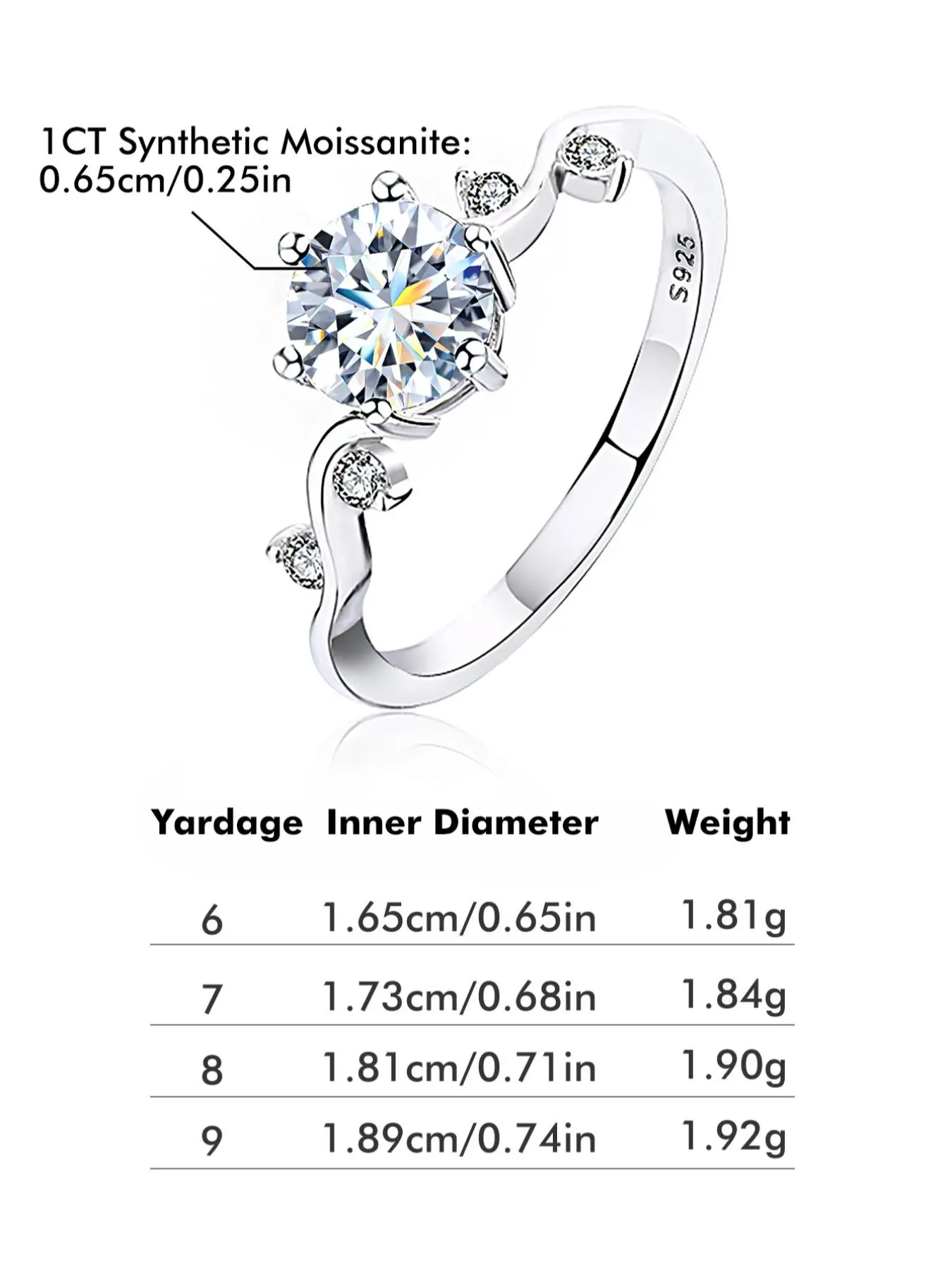 【Synthetic Moissanite】: Crafted with a stunning 1-carat synthetic moissanite, this ring offers a brilliant sparkle that rivals natural diamonds.