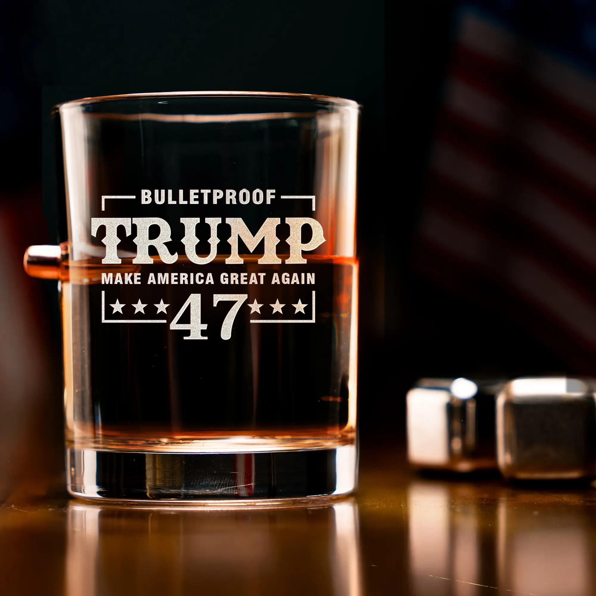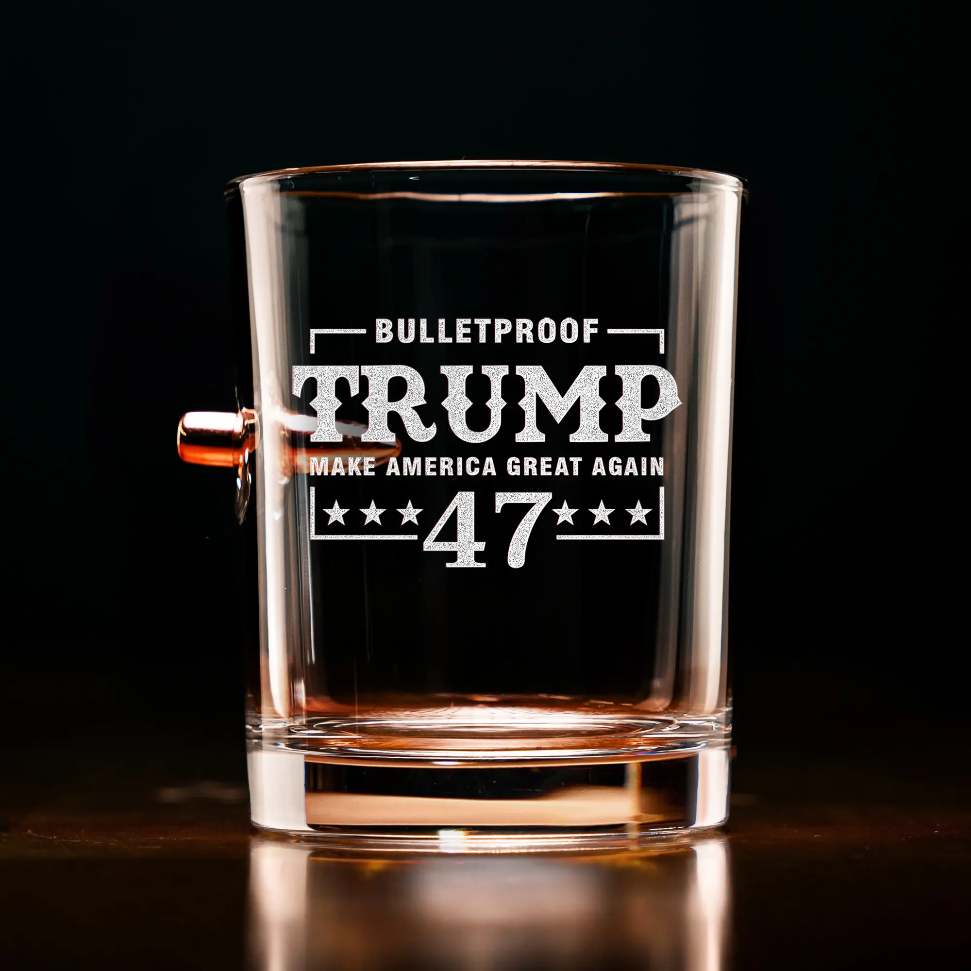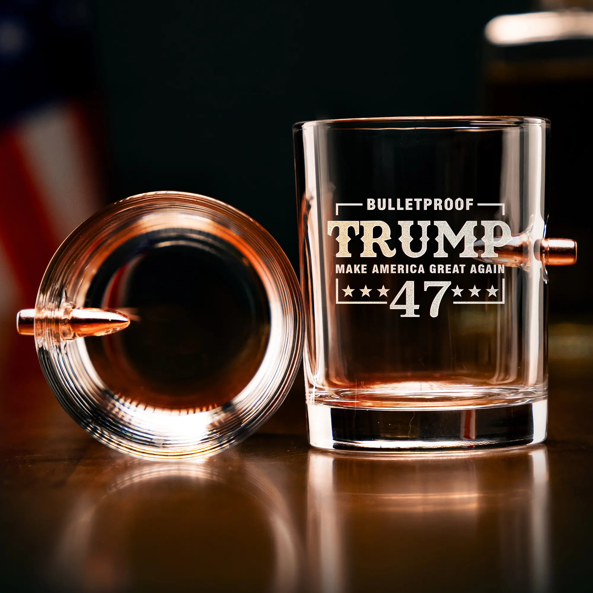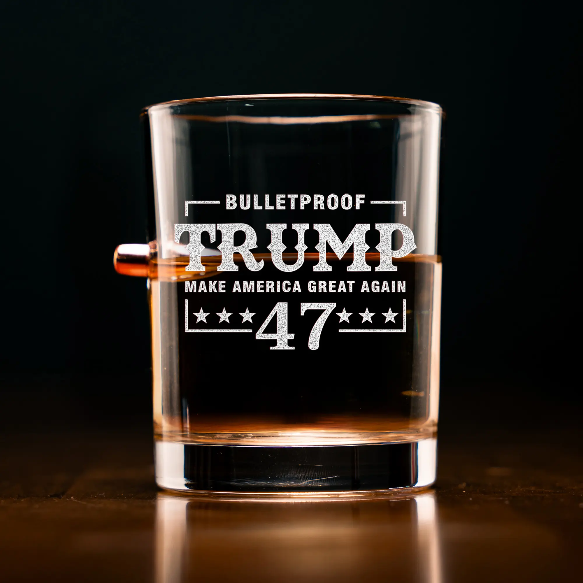 Engraved Bulletproof Trump Bullet Whiskey Glass, MAGA 11oz Rock Glass Gifts for Men Drinkware