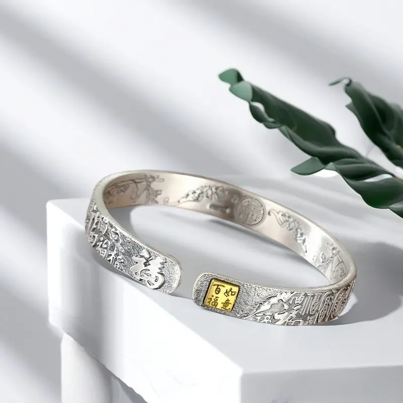 Solid Silver s925 Bangle Sterling Silver bangle Men's open bangle can be freely adjusted size send boyfriend send Dad birthday holiday gift Silver weight 31 g /1.09 oz