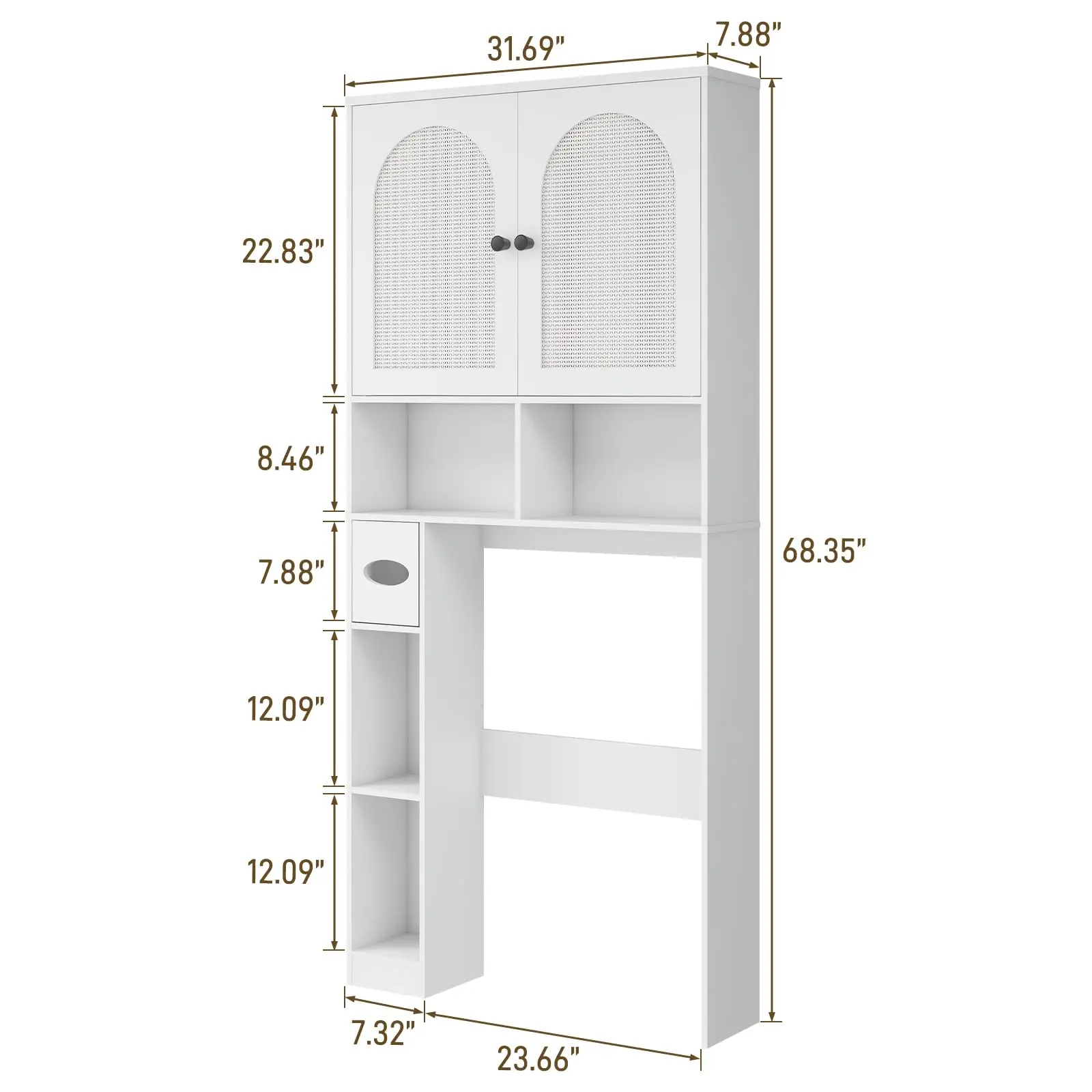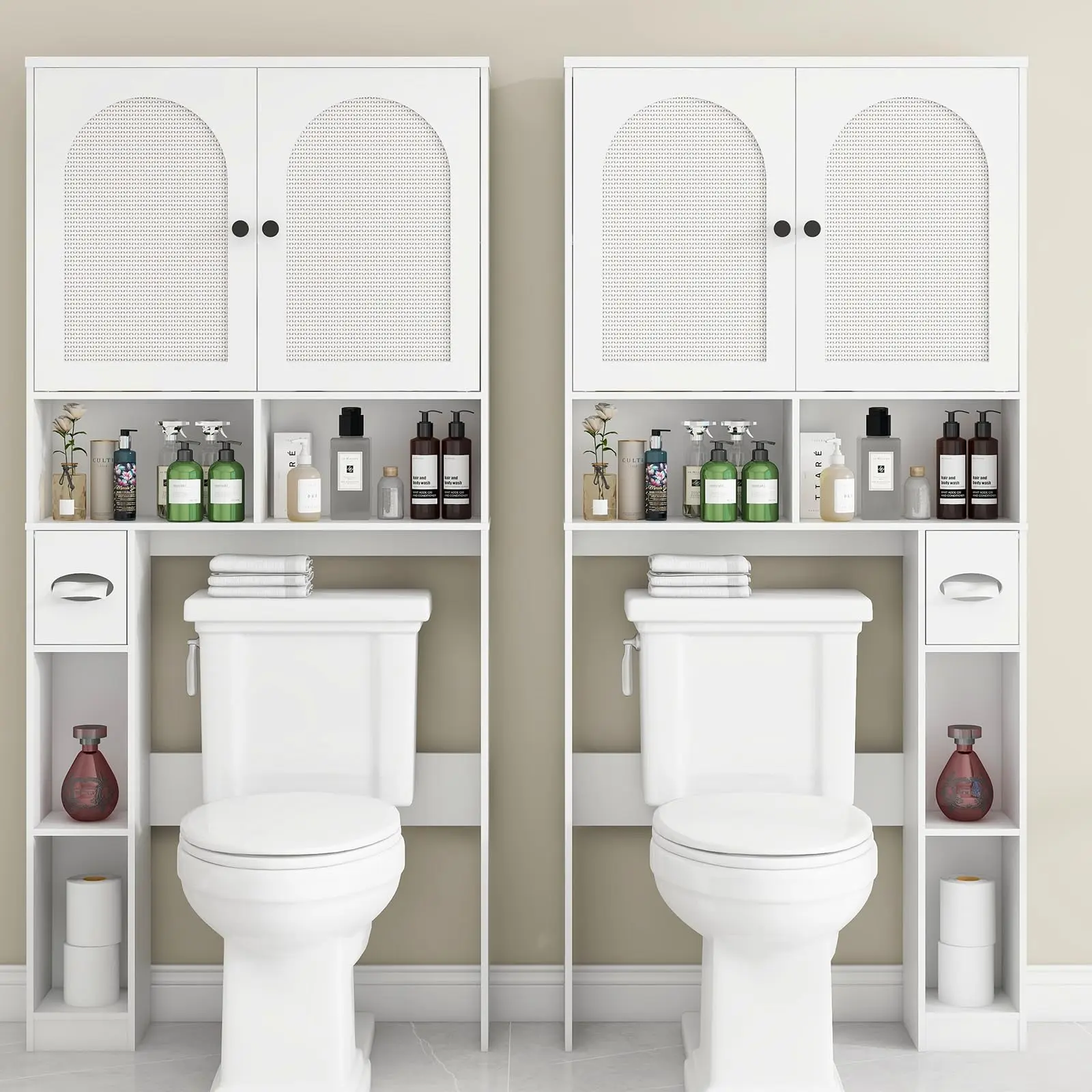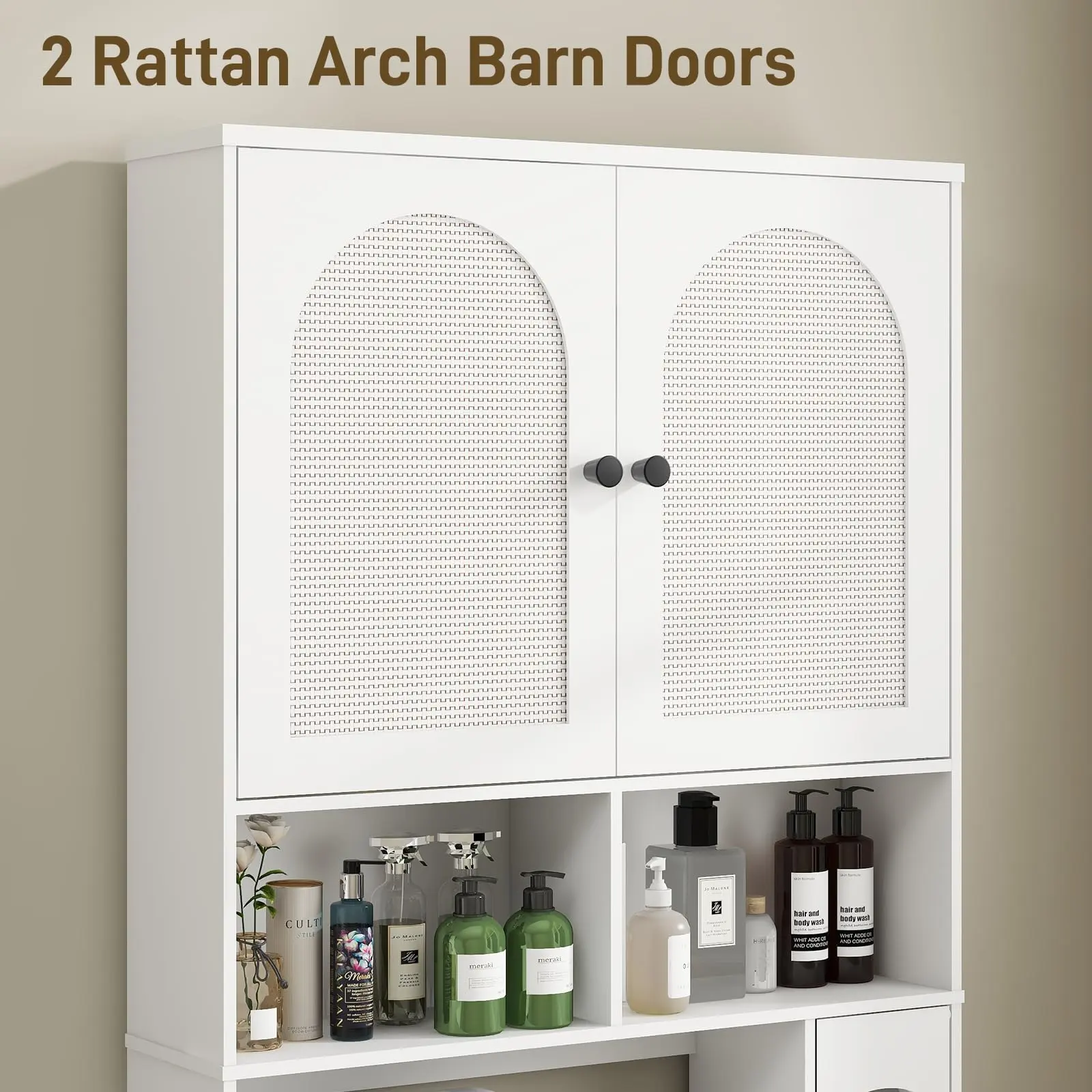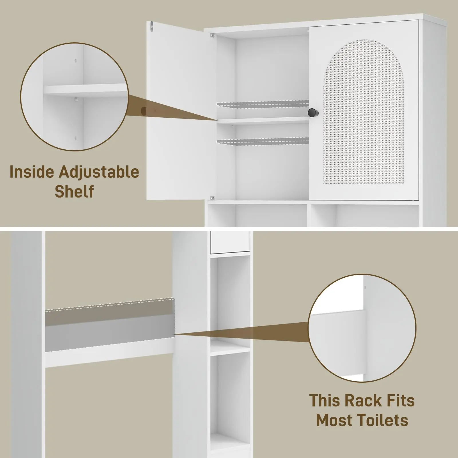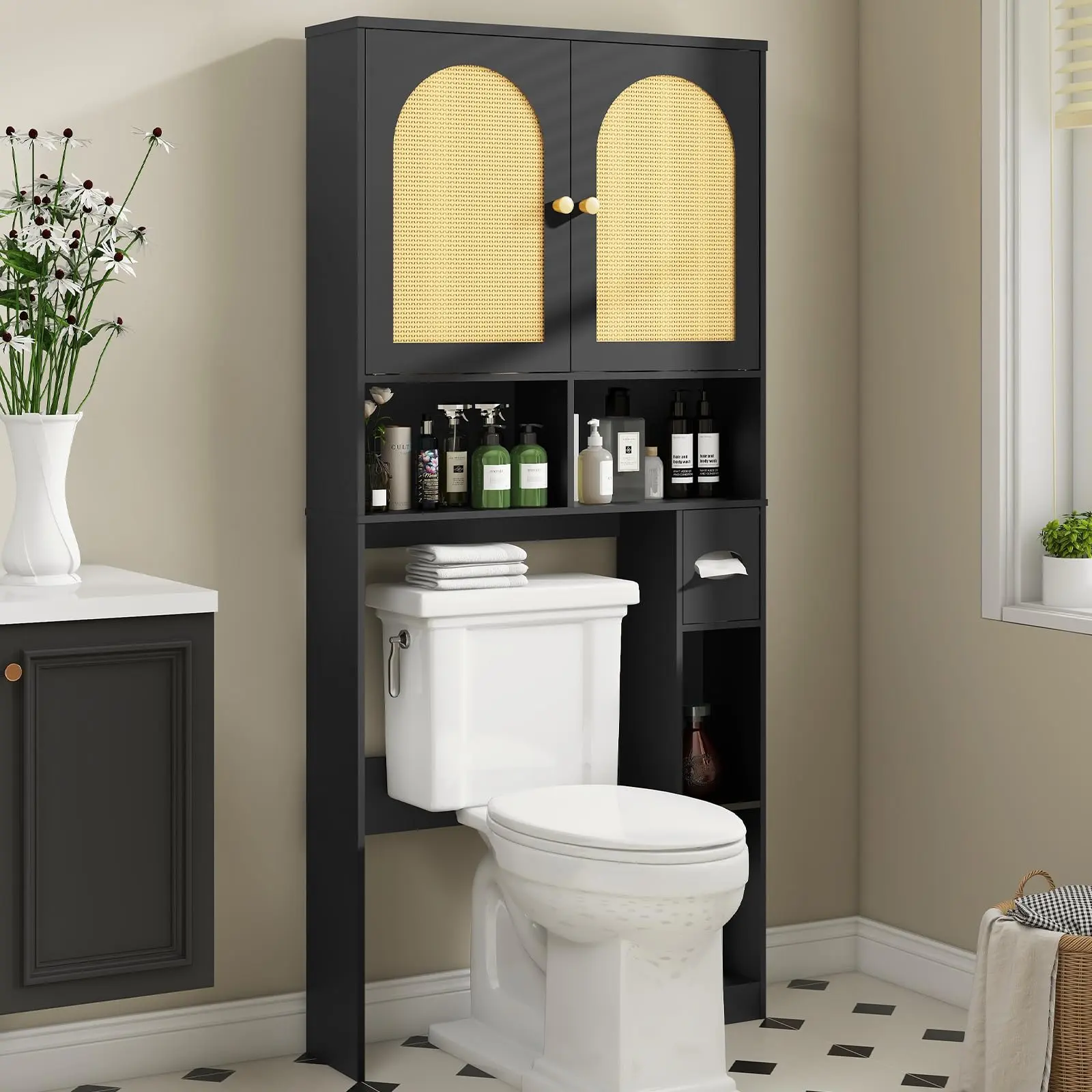 Rattan Over The Toilet Storage Cabinet with Double Doors and Adjustable Shelves