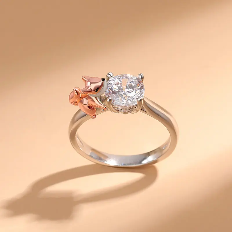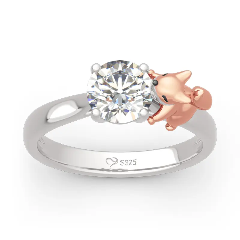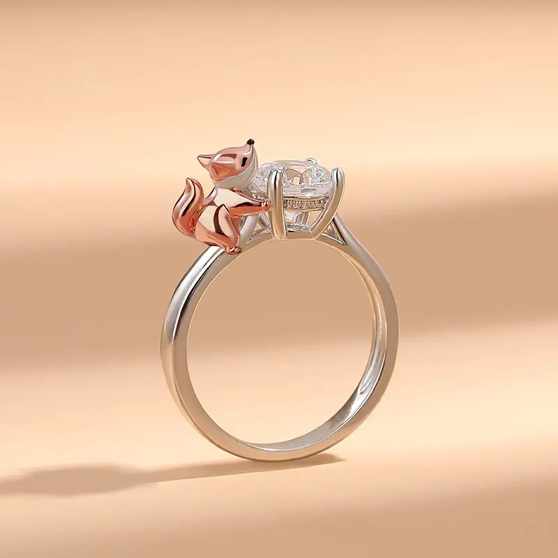 Buffed to a brilliant luster, this ring in Hug Me collection is a captivating statement of style. Crafted in sterling silver, it features a shimmering round cut stone hugged by a cute baby fox. This cute baby fox is so cute with his fluffy rose gold tail, and adorable face. Would make a great gift for anyone who loves these mysterious and majestic creatures. You will find more adorable and creative designs in our Hug Me collection.