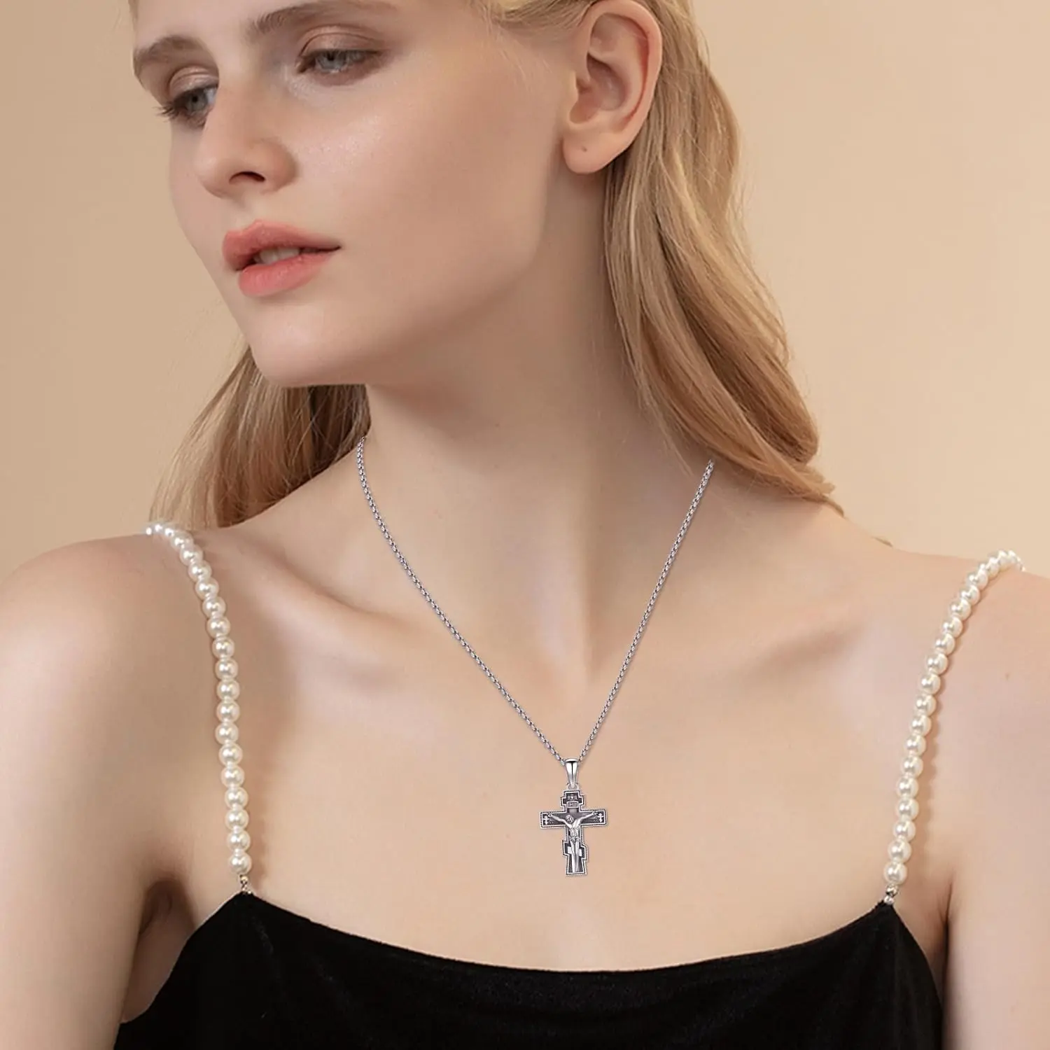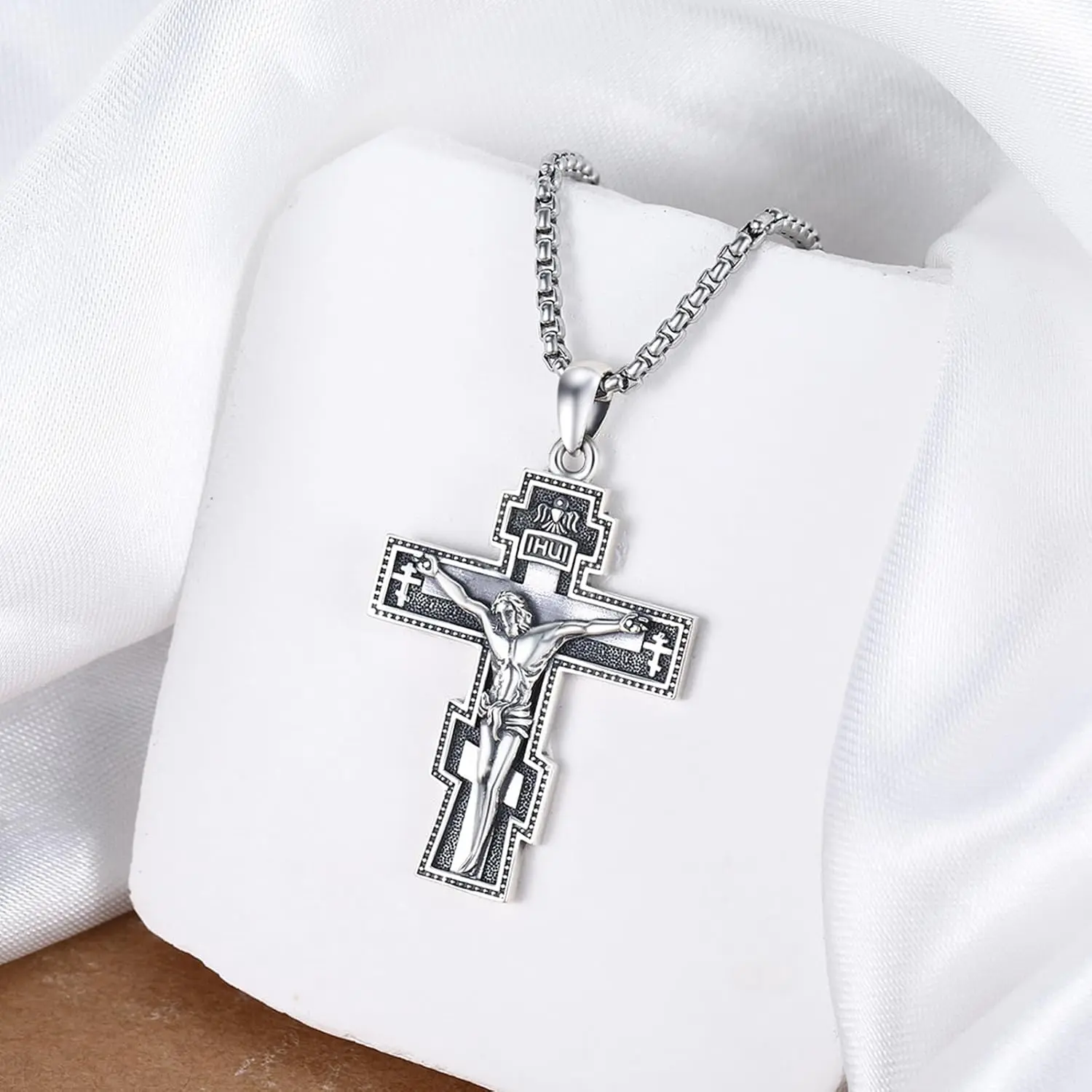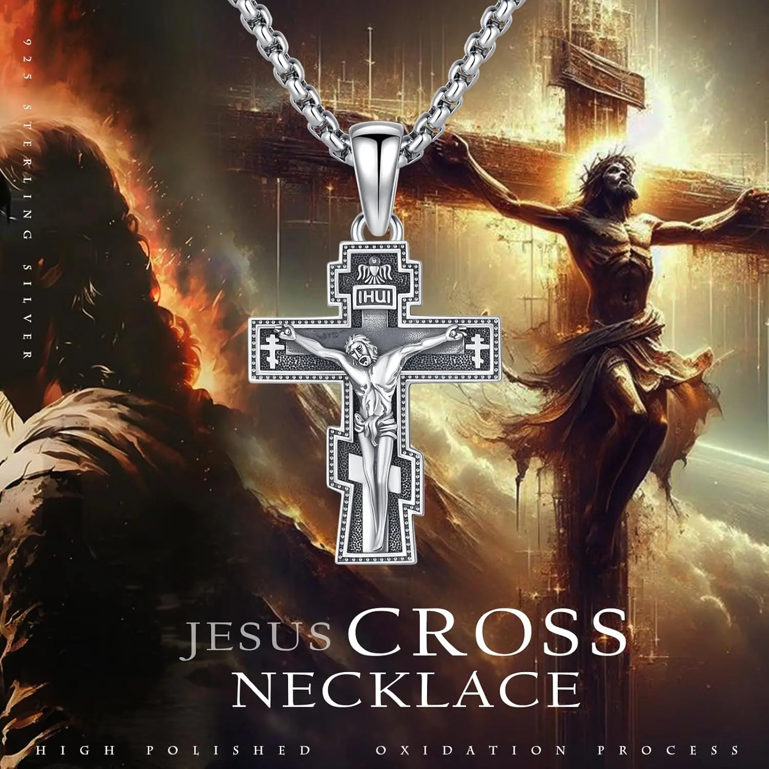 Crucifix Necklace 925 Sterling Silver Orthodox Crucifix Pendant Cross Jesus Necklace Crucifix Cross Religious Protection Jewelry for Men Women