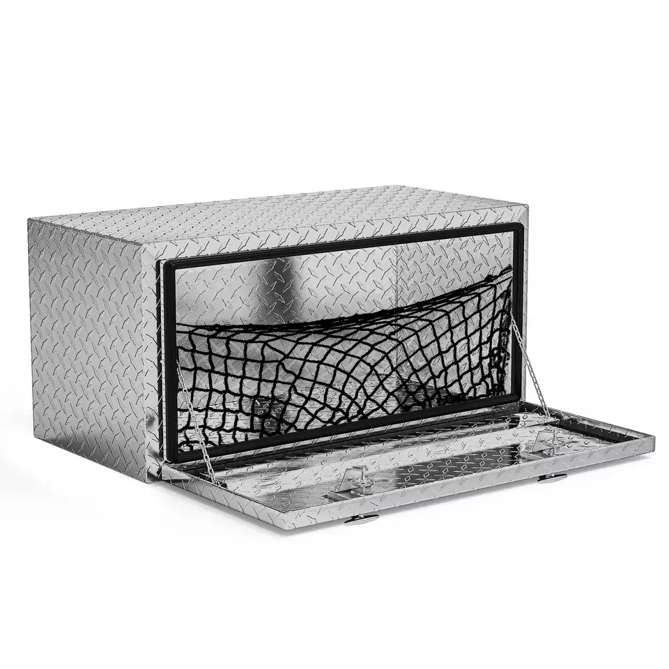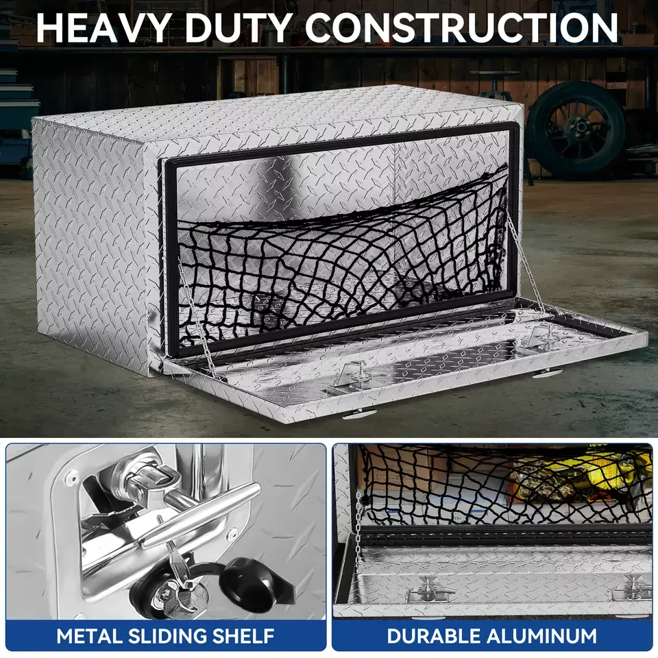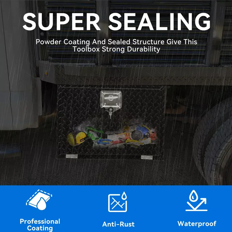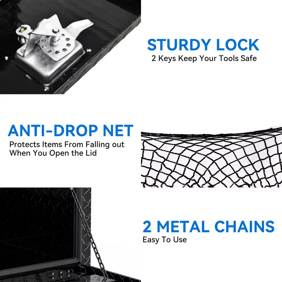 Durable: Built with high-density aluminum, this truck toolbox is designed to last and withstand long road trips without being damaged or scratched. The thickened panel and tread pattern design adds durability and resilience to the toolbox.