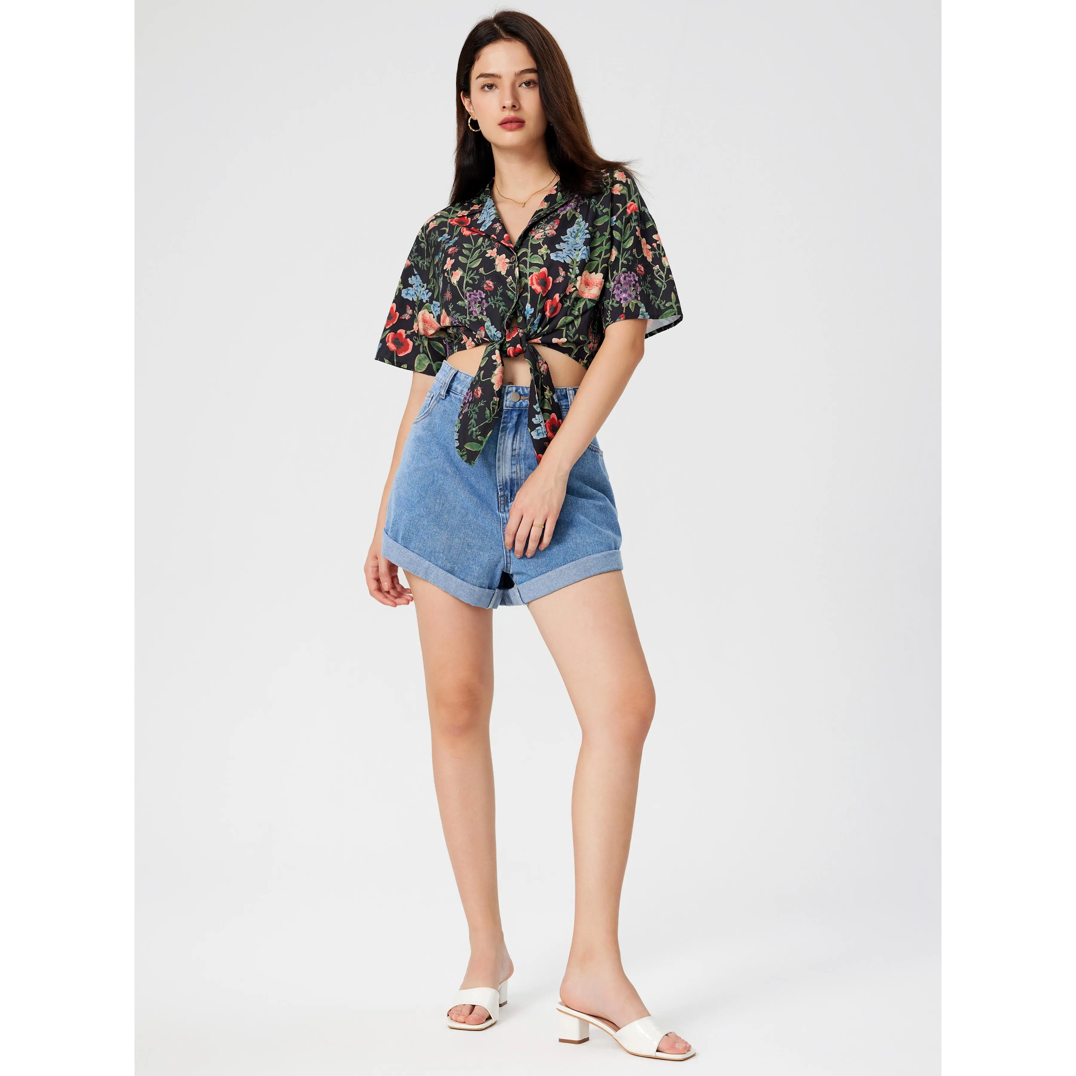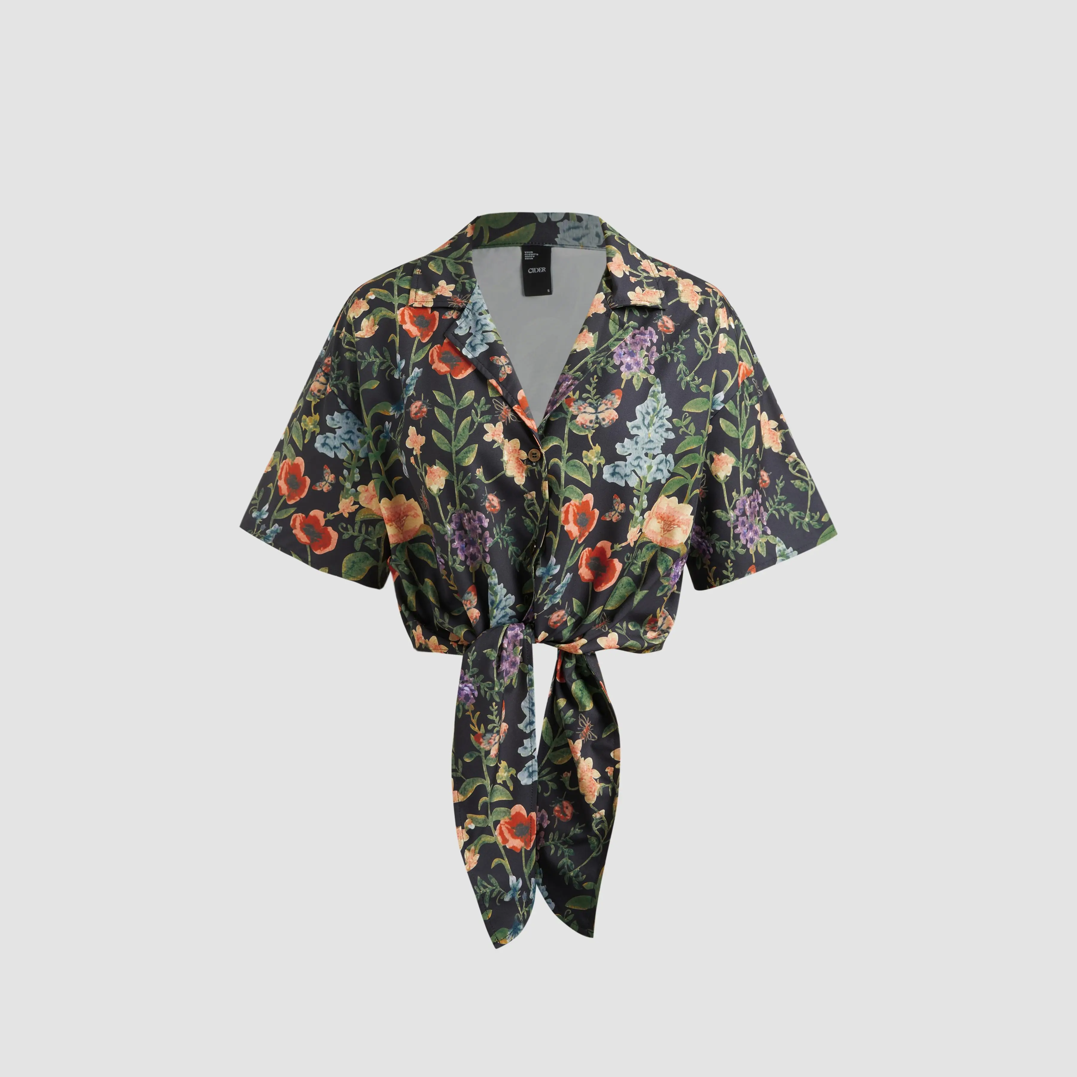 5. Cider [5 colors, size 0-26] Collar Floral Knotted Short Sleeve Blouse