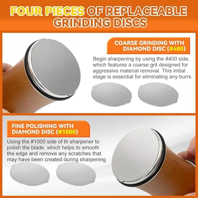 ·Durable Construction: The upgraded magnets ensure a stable and secure base for your knives, while the diamond discs improve the sharpening process.