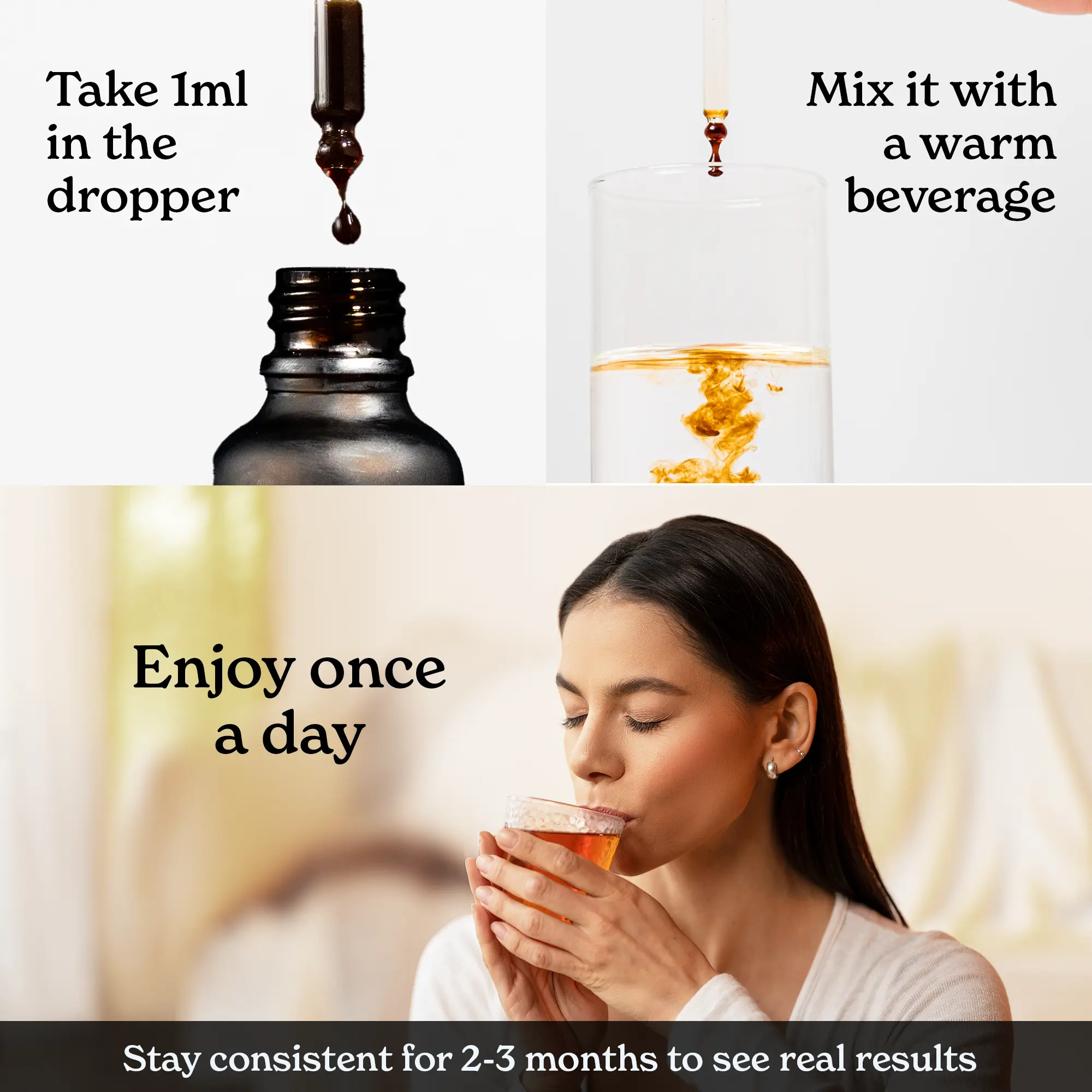 ·Integrating it into your routine is super easy, simply add 1ml to lukewarm water or milk using the dropper and enjoy daily for steady support tailored to your active lifestyle.