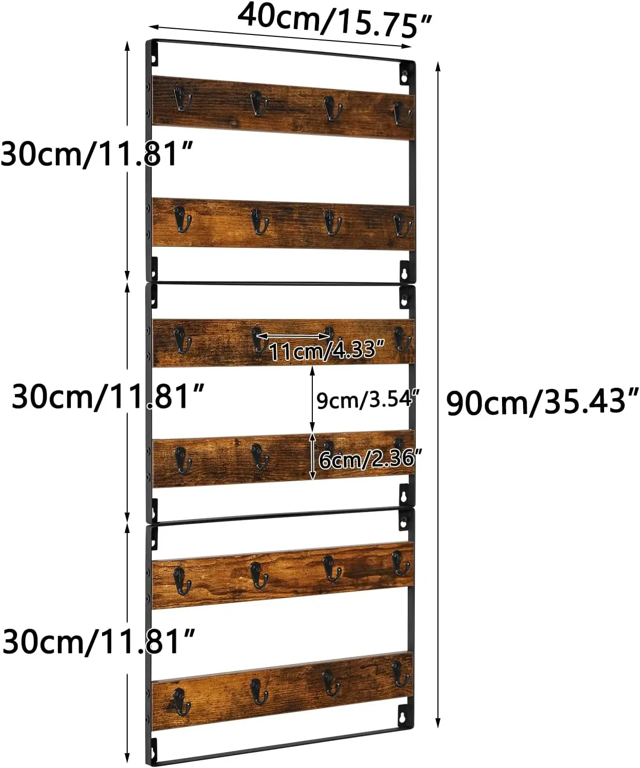 【EASY TO MOUNT】Each coffee mug rack has Keyhole style mounting brackets in 4 corners for safe, secure installation to wall. Dimensions: 0.59"Wx15.7"D x35.4"H. We carefully packed each cup holder with detailed instructions, complete accessories and small tool for your quick assembly.