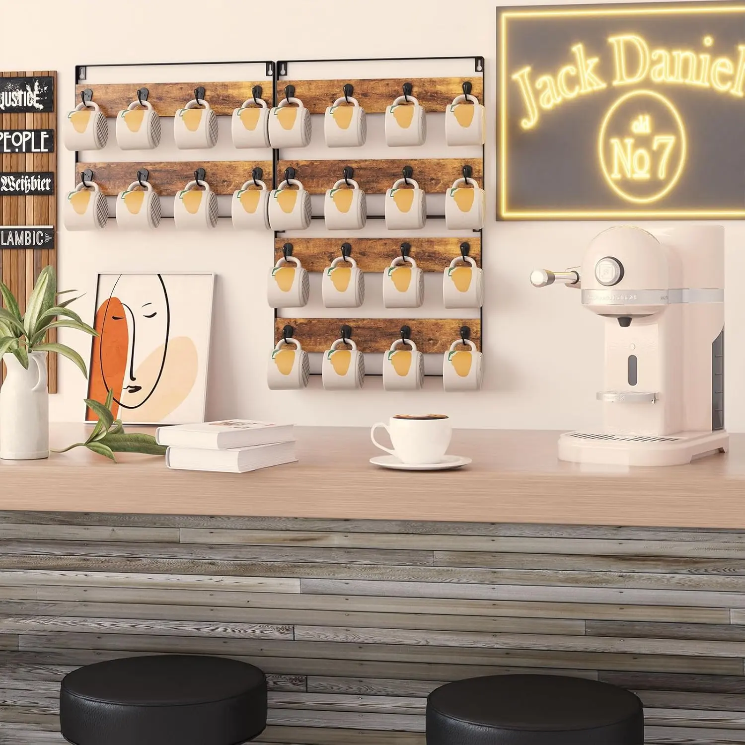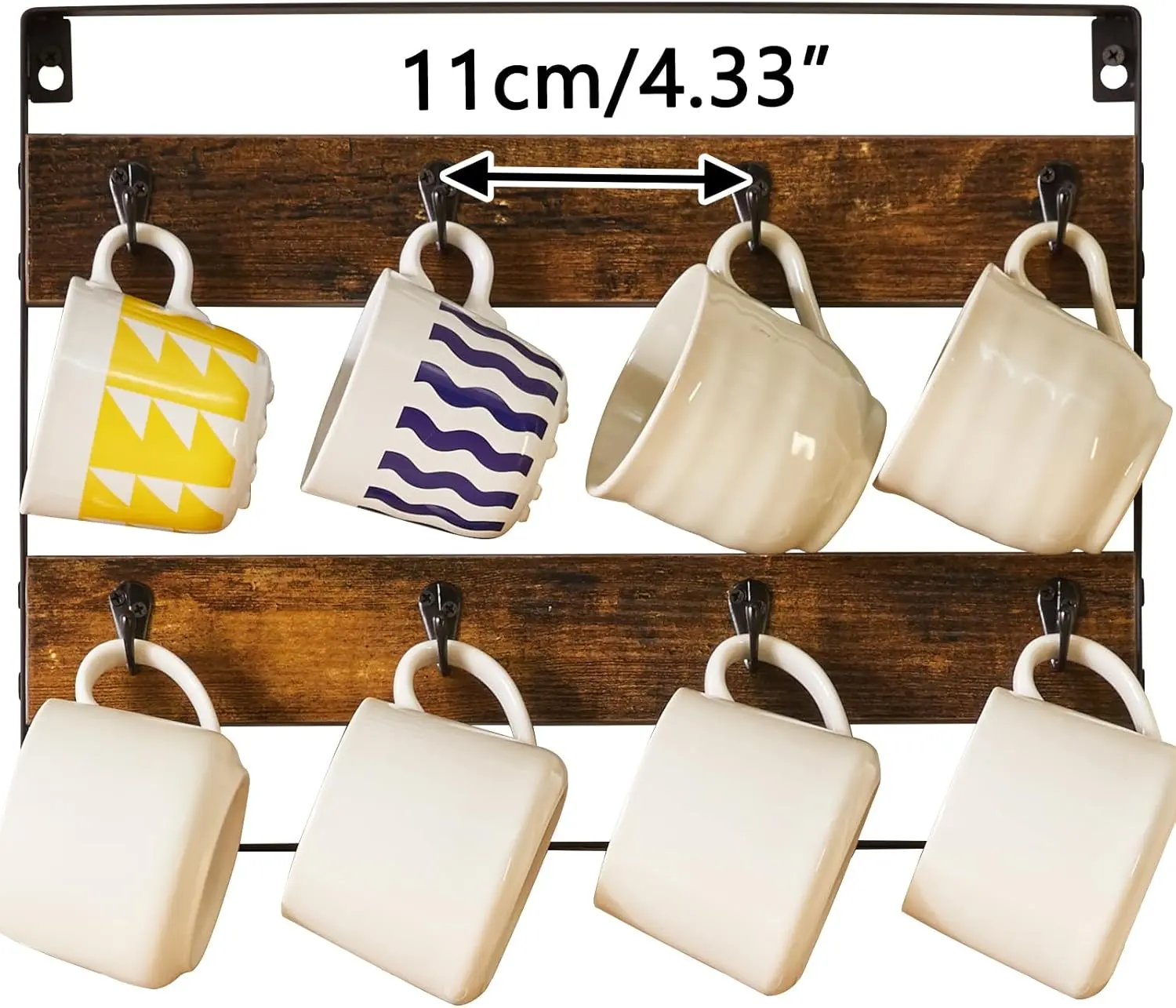 【DIY YOUR MUG HOLDER】The Coffee Mug Holder is perfect for DIY enthusiasts and coffee mug collectors. Each coffee mug wall rack has 2 layers with 8 hooks, three mug racks total.Free combination according to your needs and space.The coffee mug rack is suitable for kitchen counter, coffee table, cabinet storage, etc., suitable for different decorating styles.