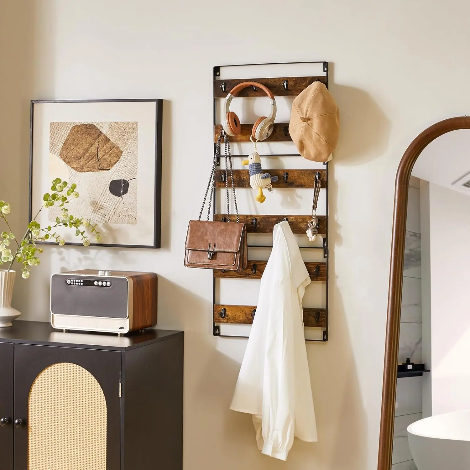 【SUPERIOR STURDINESS】Combination of durable rustic wood and black coated iron.The widened and thickened metal hooks can hold heavy cups and prevent them from falling off. The iron frame on both sides offers unparalleled stability and durability.
