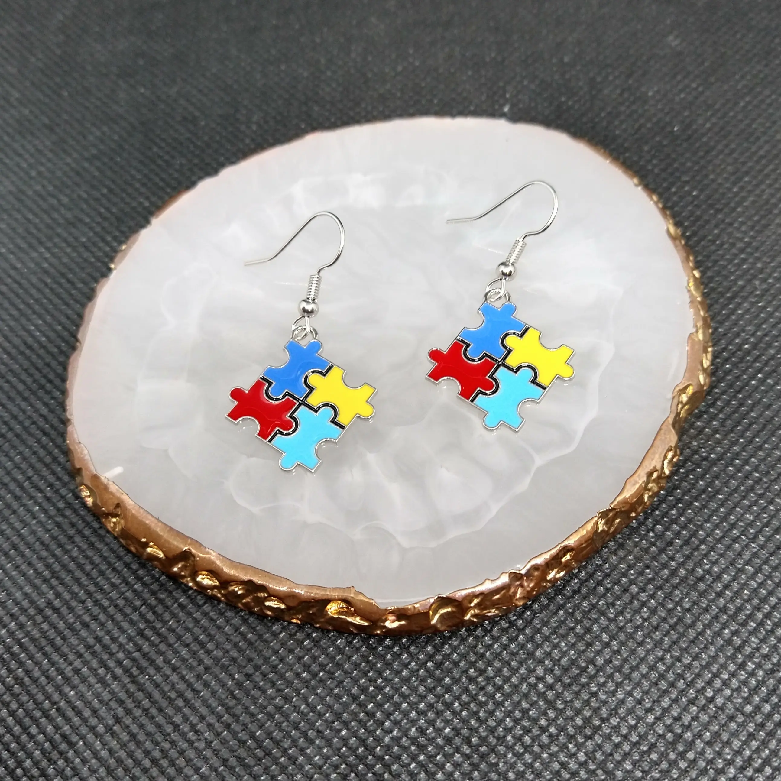 These Multi-Colored Autism Puzzle Piece Earrings are the perfect addition to any casual outfit. Made with alloy material, they are both durable and stylish.