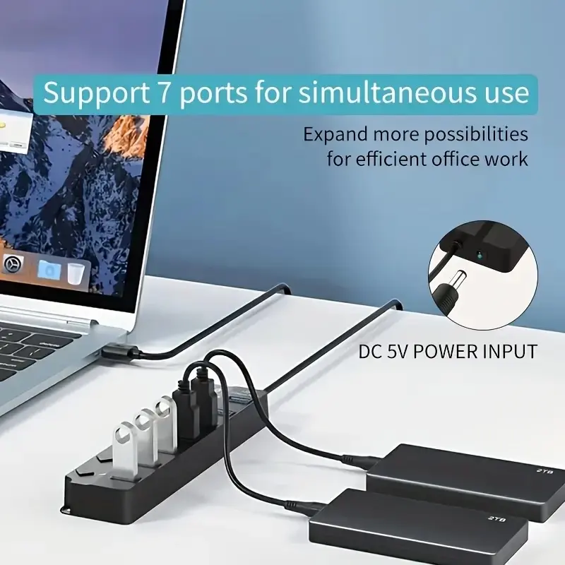 2. Put Multiple USB Port Into 1 – Turn 1 USB Hub into 7 USB Ports. Support USB Flash Drive, Mouse, Keyword and multiple inputs for Electronic Devices. Never worry about out of ports for input equipments.