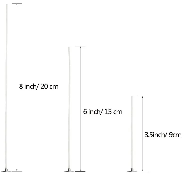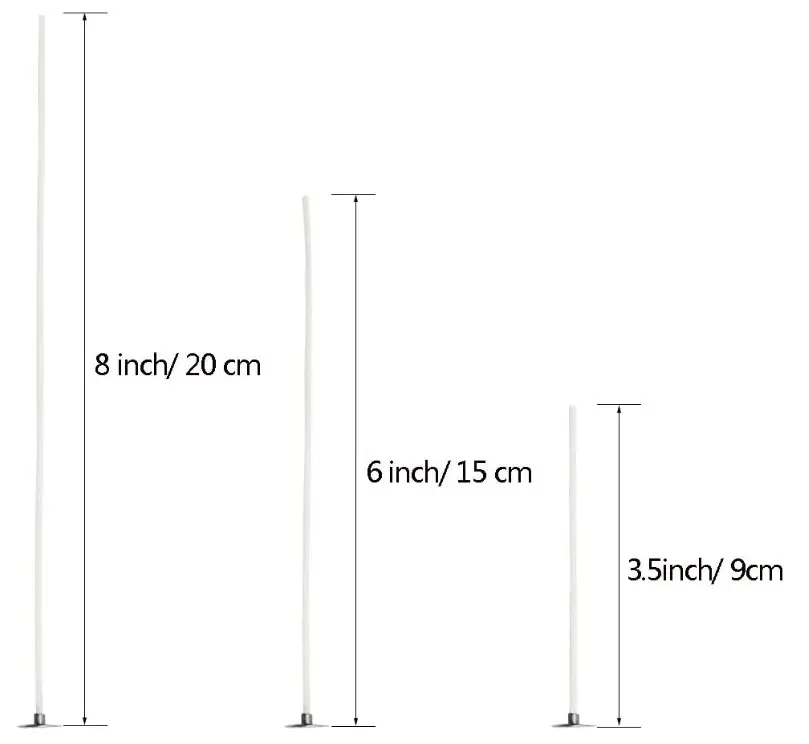 ·Package Included -- Come in 3 different sizes wicks for candle making: 9cm, 15cm and 20cm long, each size 100 pieces candle wicks; Base (tab) diameter: 12.5 mm; Cotton wicks for candle making can be easily straightened out without breaking. Pack of 300 Wicks for candle making, enough for you to use.
