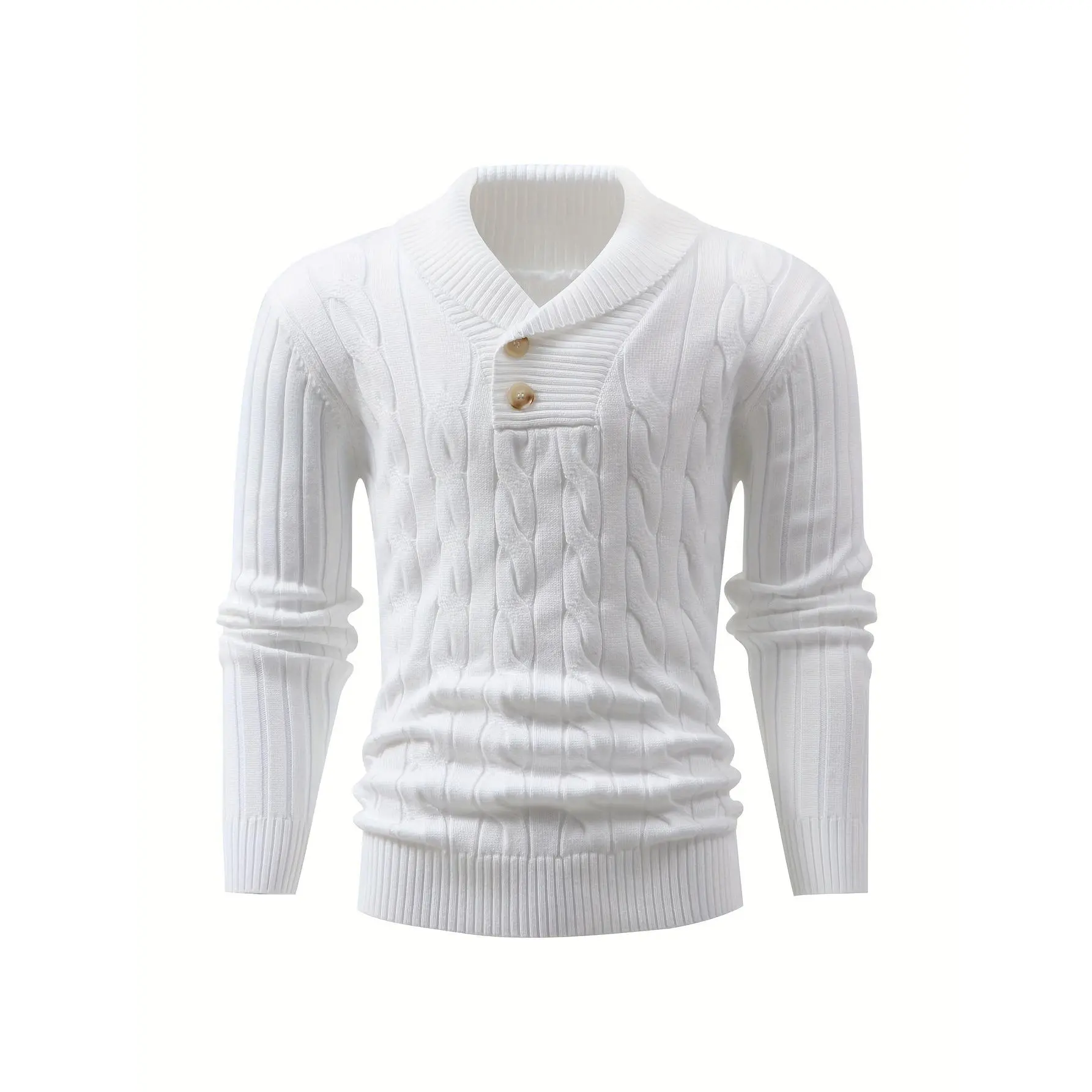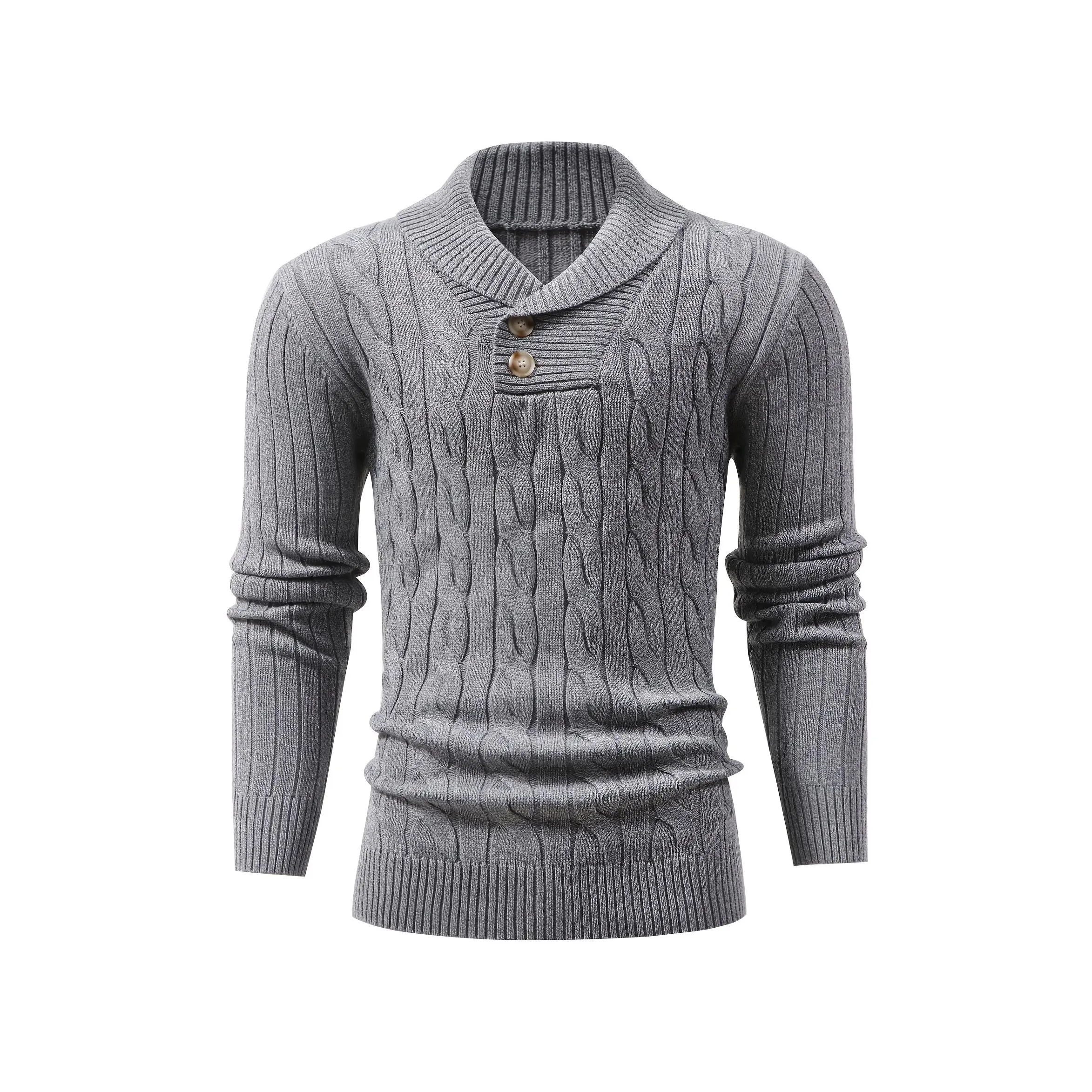 Long Sleeve Men's Casual Knit Sweater with Twist Rope Design, Lapel Collar Pullover for Fall/Winter