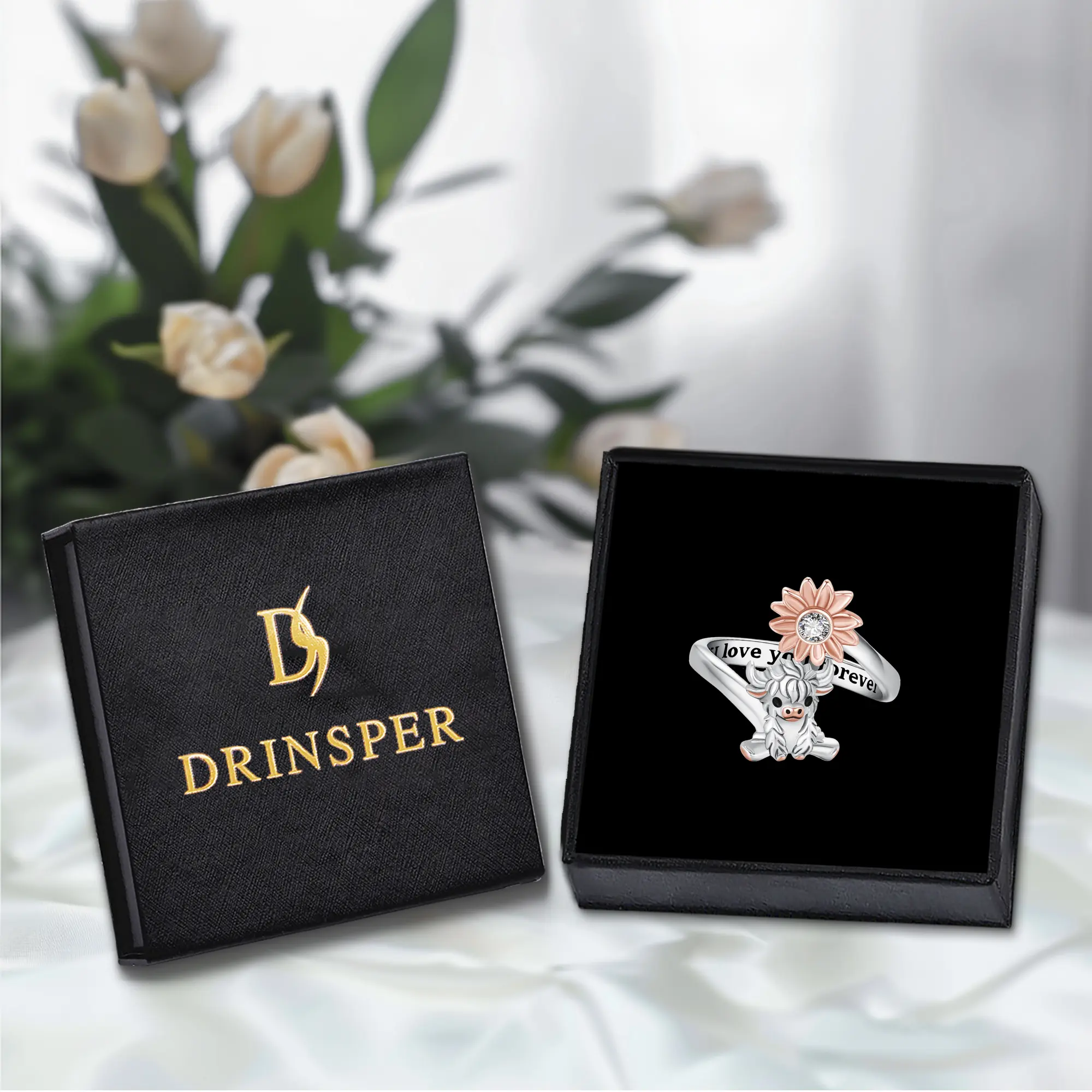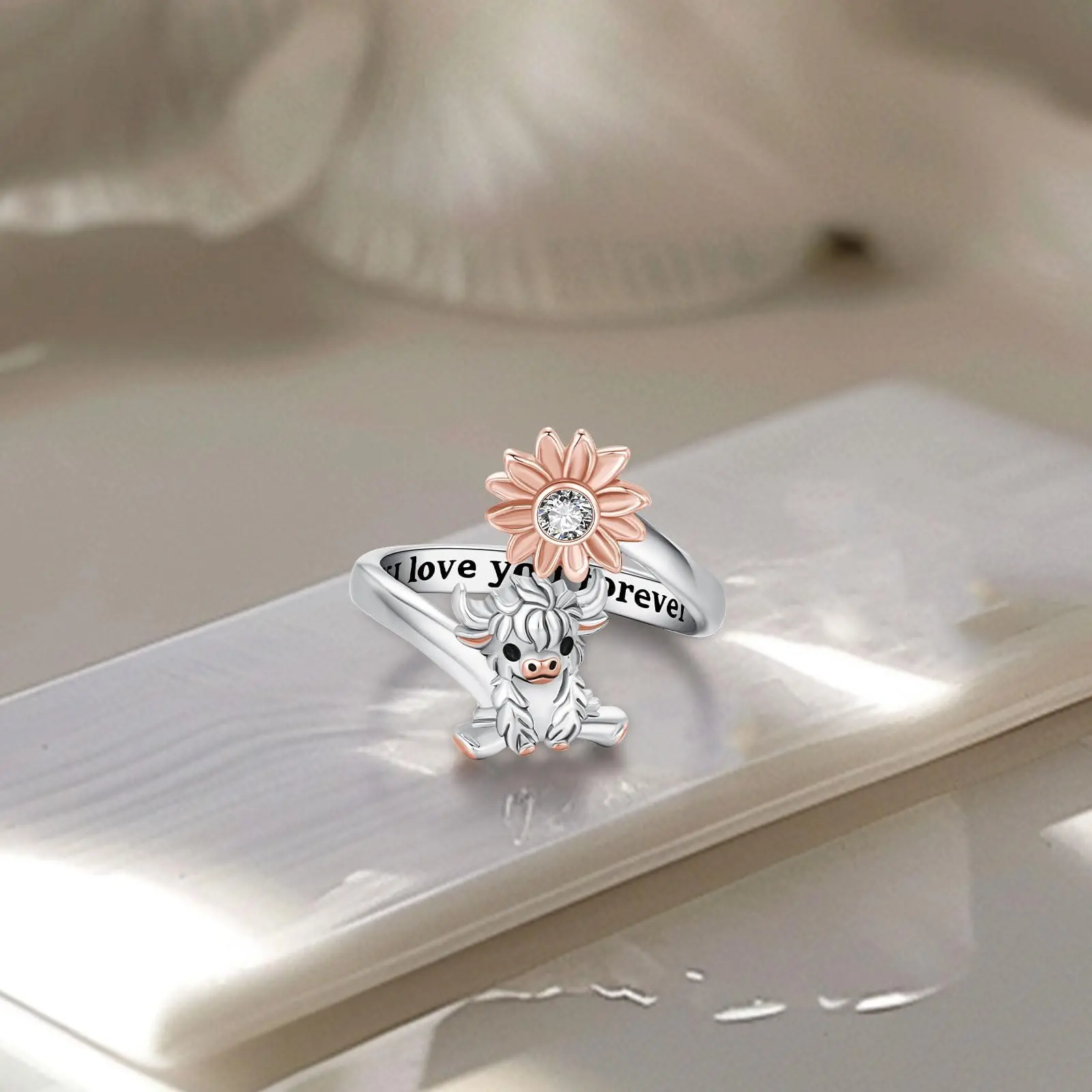 DRINSPER Highland Cow Ring 925 Sterling Silver Jewelry Highland Cow Open Ring