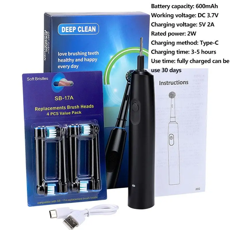 Electric Toothbrush, 1 Set Rechargeable Toothbrush with 4 Counts Replaceable Brush Heads, 5 Mode & Time Setting Intelligent Deep Cleaning Toothbrushes for Adults, Rechargeable Electronic Toothbrushes