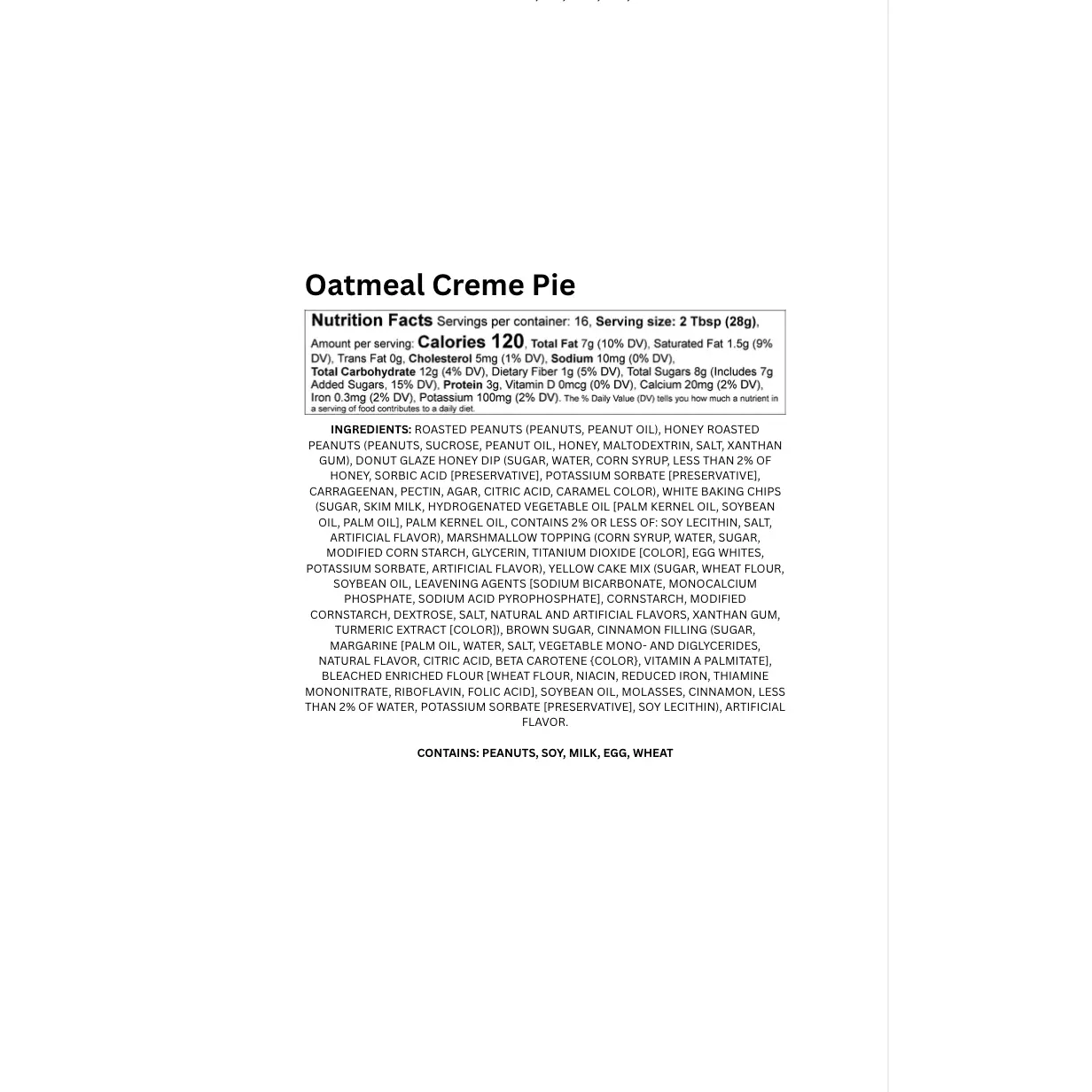CONTAINS: PEANUTS, SOY, MILK, EGG, WHEAT