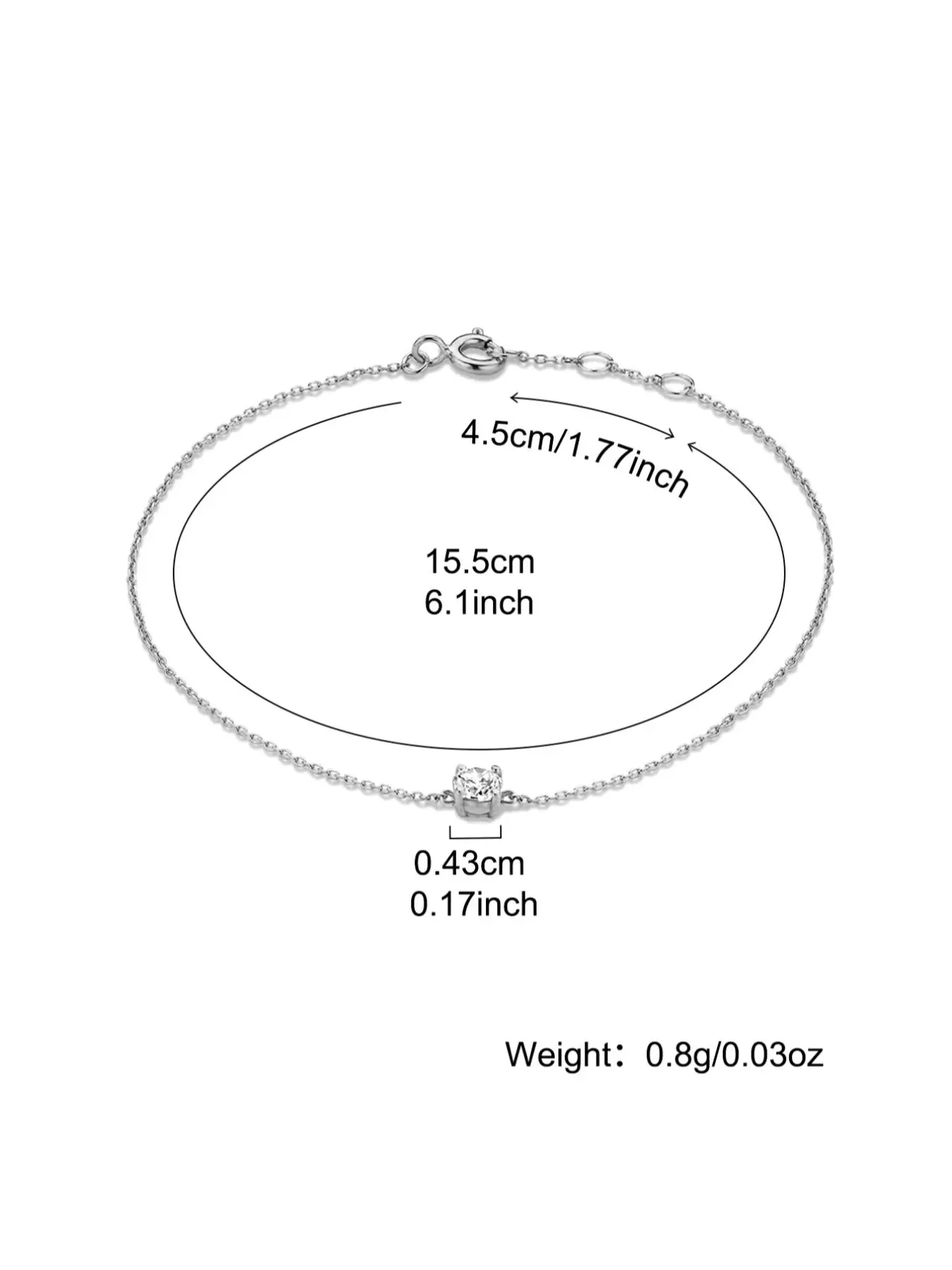 S925 Sterling Silver Elegant Zircon Bracelet, Fashionable Jewelry for Women & Girls, Trendy All-match & Exquisite Jewelry for Birthday Gift
