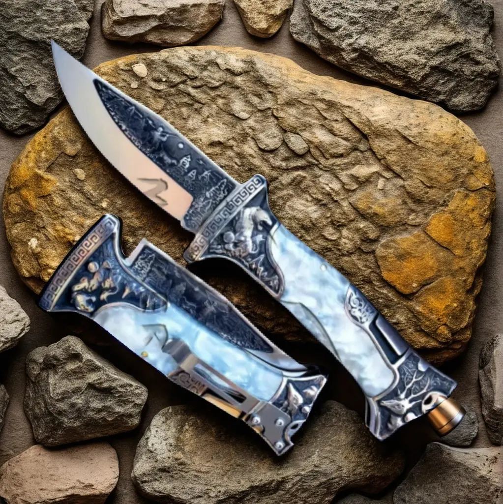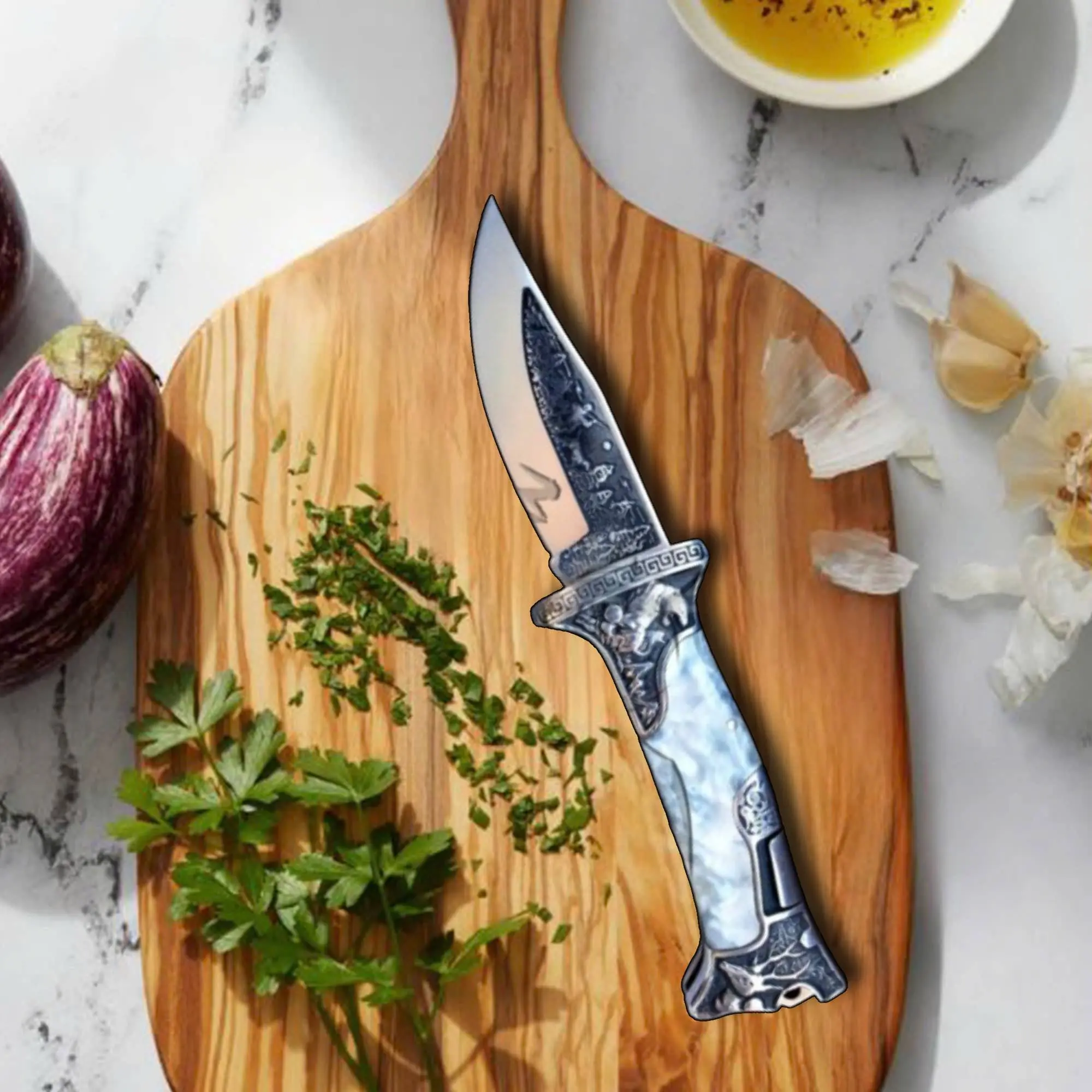 Pearl Embossed Sculpture Vintage Knife 9" Best Gift for Father, Husband, Boyfriend