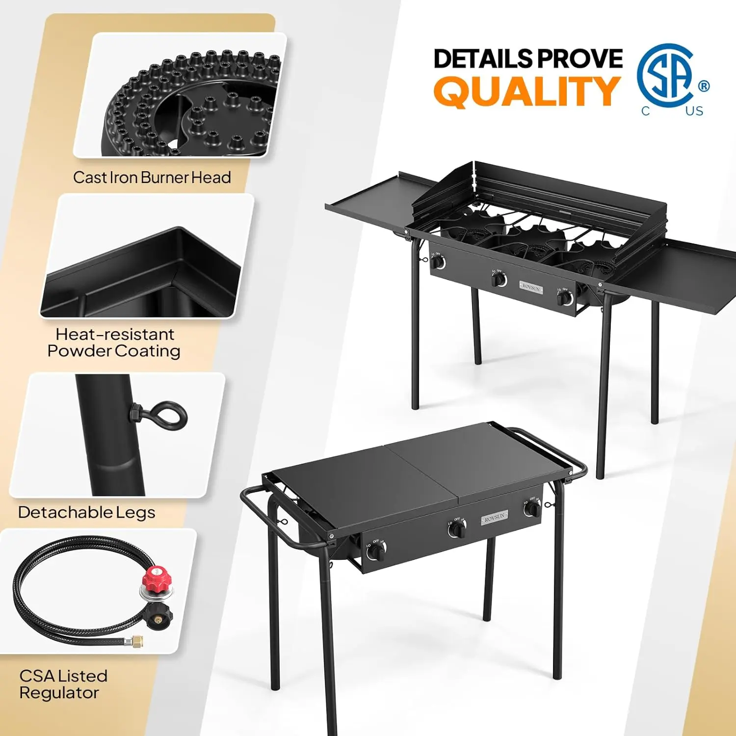 1. High-pressure triple burner camp stove, sturdy and durable design, made of cast iron long lasting and good for projects