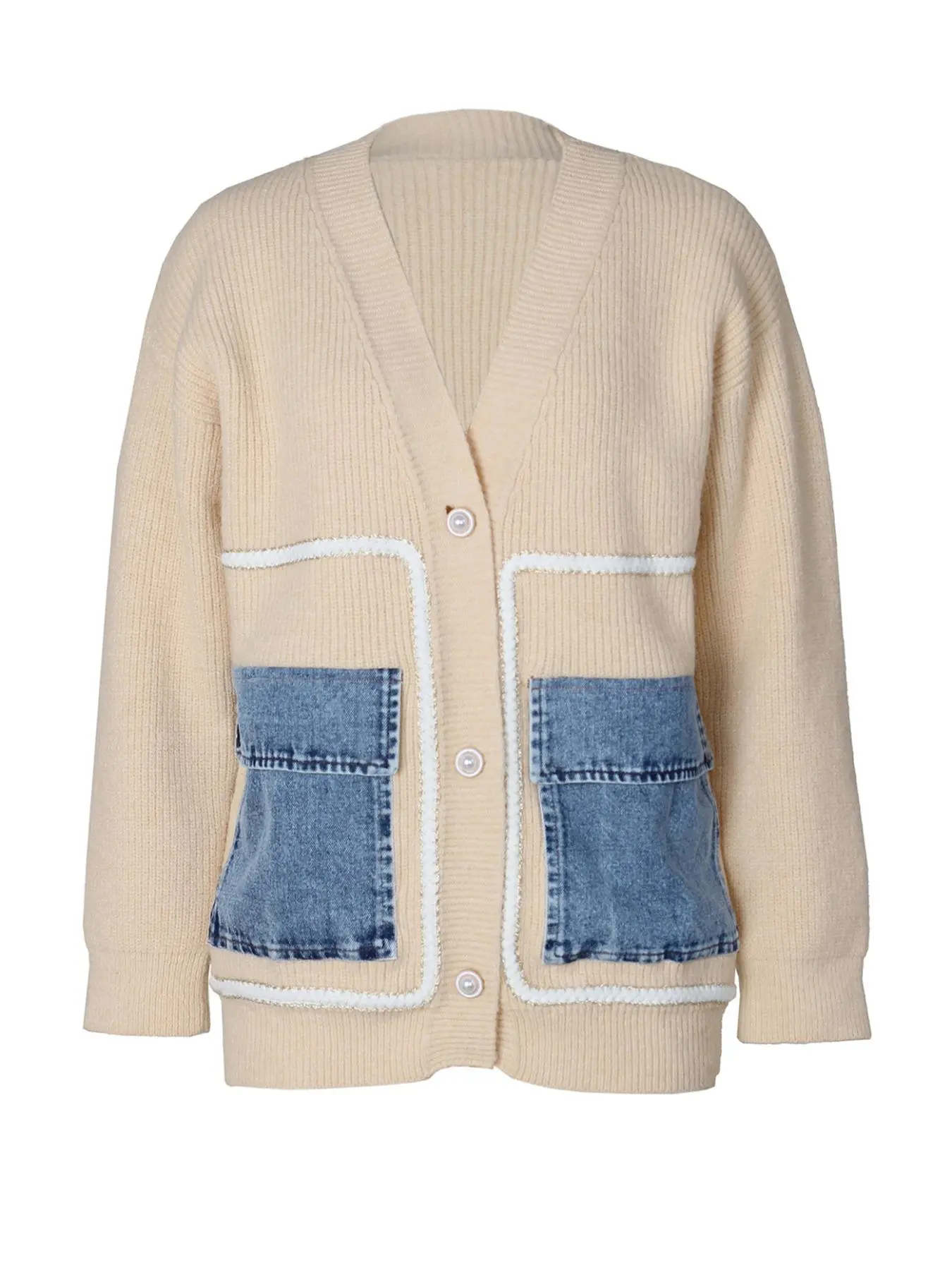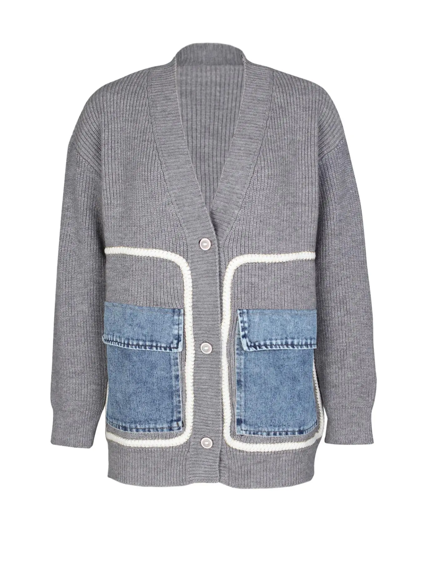 Amazing peace the Jean pockets give it a real edgy look. My husband says it looks like a teacher sweater however, paired with something you might wear to go out on a date super cute flexible look